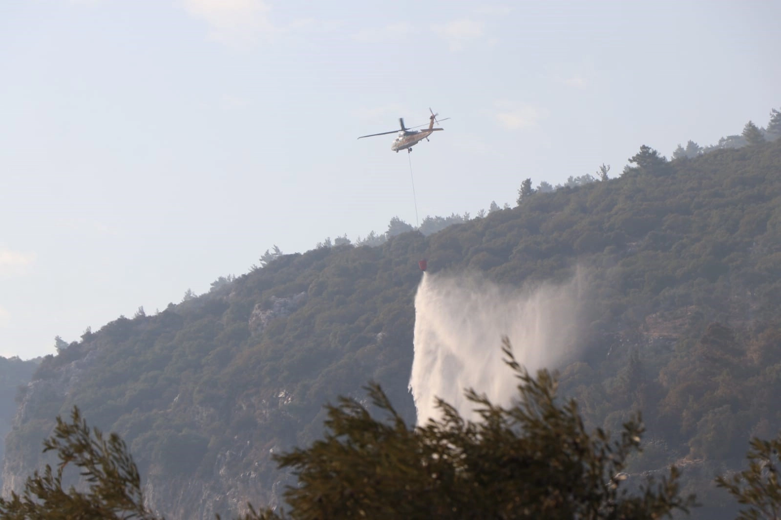 Muğla Gökova Körfezi’nde çıkan orman yangınını söndürme çalışmaları aralıksız devam ediyor.Gökova Körfezi’nde makilik ve ormanlık alanda çıkan ve geniş bir alana yayılan yangını söndürme çalışmaları sürüyor. Gün boyu devam eden çalışmalarda 45 arazöz, 14 su tankeri, 7 dozer ve 313 orman personeli karadan, 16 helikopter ve 8 uçak havadan katıldı. Jandarma ve emniyet ekiplerinin yanında Muğla Büyükşehir Belediyesi İtfaiye Daire Başkanlığı ekipleri, gönüllü vatandaşlar ve köylüler de destek verdi. Arazinin çok sarp ve engebeli olması alevlerle mücadeleyi güçleştirirken, ekiplerin yangını kontrol altına çalışmaları devam ediyor.