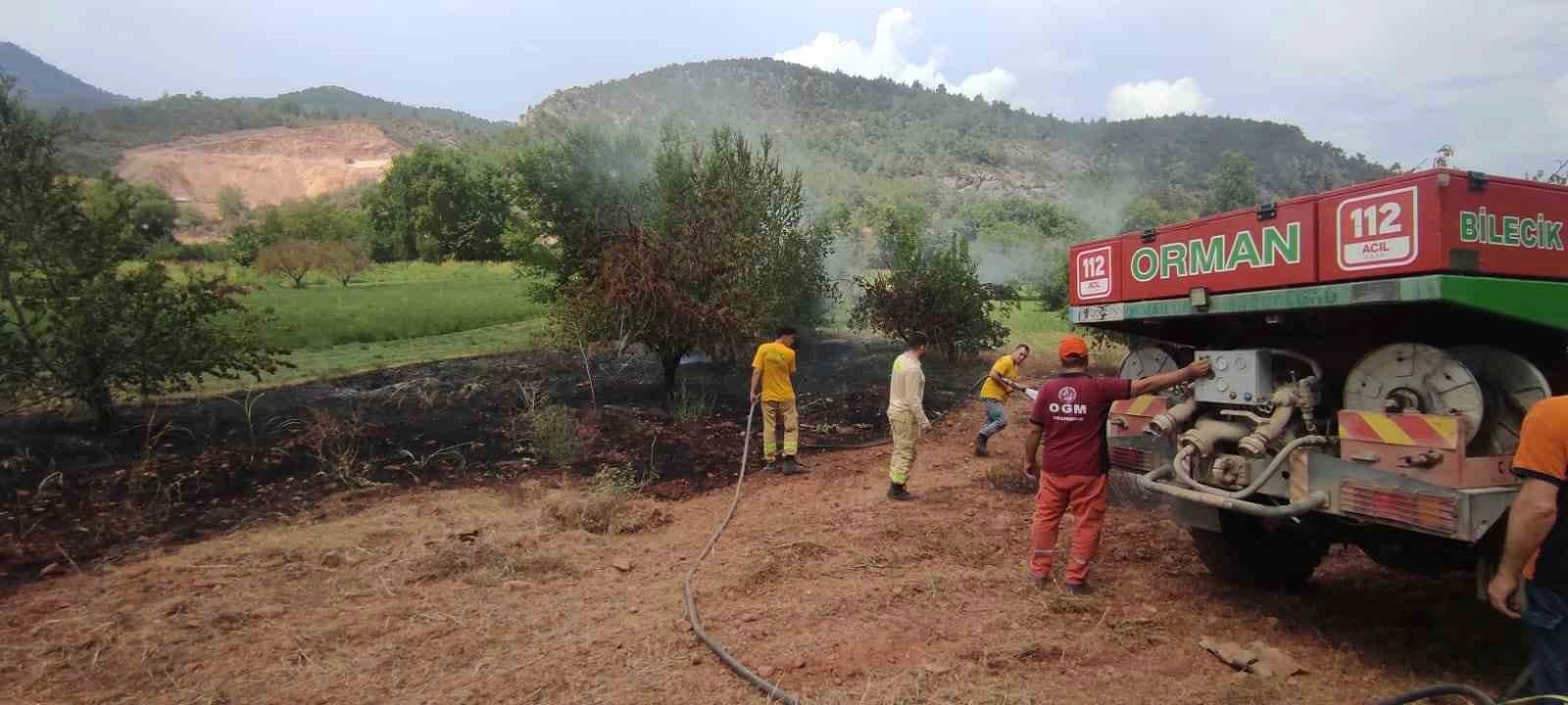 Bilecik’te başlayan yangın ormanlık alana sıçramadan kısa sürede söndürüldü.Bilecik’in Osmaneli ilçesi Düzmeşe köyü Göksu Nehri kenarında başlayan yangın Ormanlık alana sıçramadan kısa sürede söndürüldü. Yangın, 13:30 sularında Düzmeşe köyü Armut Alan mevkiinde Göksu Nehri kenarında başladı. İhbar üzerine harekete geçen Osmaneli orman İşletme yangın söndürme ekipleri, yangına hızlı bir şekilde müdahale etti. Yangın söndürme çalışmalarına katılan ekipler, etkin ve koordineli bir şekilde çalışarak yangını kısa sürede kontrol altına aldı. Ormanlık alana sıçramadan müdahale edilen yangın, söndürüldü. Yangının çıkış sebebinin araştırıldığı ve gerekli incelemelerin başlatıldığını belirtti.