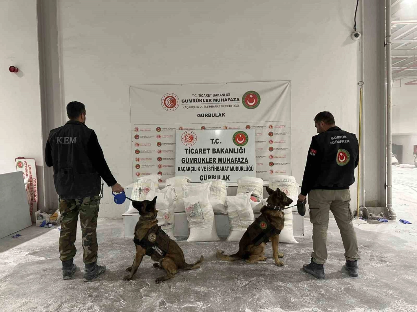 Ticaret Bakanlığı, Ağrı’daki Gürbulak Sınır Kapısı’nda İran’dan Türkiye’ye giriş yapan 3 tırda yapılan denetimlerde 4 buçuk tonu aşkın uyuşturucu madde ele geçirildiğini bildirdi.Ticaret Bakanlığından yapılan açıklamaya göre, Gümrükler Muhafaza Genel Müdürlüğü birimlerince yürütülen uyuşturucu kaçakçılığı ile mücadele çalışmaları neticesinde Gürbulak Sınır Kapısı’nda rekor miktarda uyuşturucu ele geçirilerek zehir tacirlerine bir darbe daha indirildi. İran’dan Türkiye’ye giriş yapan 3 tır aracı Gürbulak Gümrük Muhafaza Kaçakçılık ve İstihbarat Müdürlüğü ekiplerince riskli kategoride değerlendirilerek detaylı kontrole tabi tutuldu. Gerçekleştirilen x-ray taramasında söz konusu araçlarda şüpheli yoğunluk tespit edilmesi üzerine, narkotik dedektör köpeklerden de faydalanılarak gerçekleştirilen arama neticesinde talk pudrasına emdirilmiş vaziyette 706 kilogram ve bitki köklerine gizlenmiş vaziyette 3 ton 797 kilogram olmak üzere 4 buçuk tonu aşkın metamfetamin cinsi uyuşturucu madde ele geçirildi.