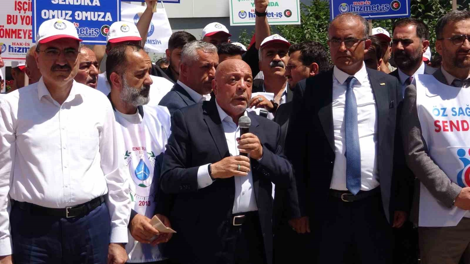 Hak İşçi Sendikaları Konfederasyonu (Hak-İş) Genel Başkanı Mahmut Arslan, 800 işçinin işine son veren DEM Partili belediye başkanlarına seslenerek, “Biz kavga etmek istemiyoruz. Gelin bu arkadaşlarımızın hepsini işe gönderin. Sürgünlerden vazgeçin. Herkes işine dönsün” dedi.Van’daki belediyelerden çıkarılan çok sayıda işçinin DEM Partili İpekyolu Belediyesi önündeki eylemi 3 aydır sürüyor. DEM Partili Van Büyükşehir Belediyesi ile İpekyolu Belediyesi, 1 Mayıs İşçi Bayramı’ndan 1 gün sonra çok sayıda işçinin iş akdine son vermişti. İşten çıkarılan işçiler, Hak-İş Van Şubesi öncülüğündeki eylemlerini 3 aydır sürdürüyor. Bugün belediye önünde devam eden eyleme Hak-İş Genel Başkanı Mahmut Arslan da katıldı."Sakın bunlardan korkup geri adım atmayın"İşçiler tarafından atılan sloganların ardından bir basın açıklaması yapan Hak-İş Genel Başkanı Mahmut Arslan, sendika olarak mazlumun yanında mücadelelerini sürdüreceklerini belirtti. 31 Mart yerel seçimleri sonrası işten çıkarılan işçilerin mücadelesine destek vermek için Van’da olduklarını ifade eden Genel Başkan Arslan, “Hak-İş olarak bölgemizin bütün mağdur ve mazlumlarının yanında hep mücadelemizi sürdürdük. Bu topraklarda onurlu bir yaşam isteyen, bu topraklarda ekmeğiyle, aşıyla, ayakta kalmaya çalışan belediye emekçilerinin herhangi bir soruşturma geçirmeden sırf kendi zihniyetleri olmadığı için işten çıkarılın 800’den fazla arkadaşımızla dayanışma için buradayız. Bu arkadaşların haklarını hukuku, ekmeğini, elde edene kadar burada kalmaya devam edeceğiz. Türkiye’nin pek çok yerinde olduğu gibi seçim öncesi vaat ettiklerinin tam tersini yapan bir zihniyetle karşı karşıyayız. Bu iki yüzlülüğü, bu sahtekarlığı, bu riyakarlığı lanetle kınıyoruz. VASKİ, Gevaş, Tuşba, Edremit ve diğer belediyelerden işten çıkarılan arkadaşlarımızın tekrar işe dönmesine kadar mücadelemizi sürdüreceğiz. Sakın bunlardan korkup geri adım atmayın. Sakin bunların baskılarına, bunların tehditlerine boyun eğmeyin. Direne direne kazanacağız” dedi.“İşten çıkarılma gerekçelerinin hiçbiri gerçek değil”Belediyelerin DEM Parti’nin mülkiyetinde olmadığını dile getiren Arslan, “Van’ın tek helal oylarıyla seçildiniz. Halkların kardeşliği dediniz, halkların dediği olacak dediniz, barış, kardeşlik, adalet, hukuk dediniz ama yaptıklarınız ne? Adaleti yerinden ettiniz, hukuku tanımadınız. Halkların kardeşliğini de halkları da böldünüz. Yazıklar olsun size. Hak-İş olarak 40 yıldır buradayız. Çok belediye başkanları gördük. Çoğu da gelip, gittiler. Ancak biz bundan sonra da burada olmaya devam edeceğiz. İşten çıkarılma gerekçelerinin hiçbiri gerçek değil, yalan söylüyorlar. İşten çıkarılan 800 arkadaşımızın hakkında işlem yapılmamıştır. Bu işçilerin kusuru nedir? İşe gitmişler, işe başlamışlar. 6 ay önce işe başlamışlar diye işten çıkarma hakkı nereden geliyor” diye konuştu.“Sürgünlerden vazgeçin”Konuşmasında DEM Parti’nin belediye başkanlarına seslenen Arslan, sözlerini şöyle sürdürdü:“Bu yanlıştan vazgeçin. Bu işçilerin emeğini, alın terini, hakkını, hukukunu düşünün. Bu süreler çabuk gelip geçer. Bir gün hesap günü gelir, hesabını da bu millet size sorar. Biz kavga etmek istemiyoruz. Gelin bu arkadaşlarımızın hepsini işe gönderin. Sürgünlerden vazgeçin. Herkes işine dönsün. İşini yapmayanlarla ilgili atacağınız her adımı destekleyeceğiz. Ama önce bu arkadaşlarımızı işe gönderin.”İşçiler, yapılan konuşmanın ardından belediye önündeki eylemlerine devam etti.