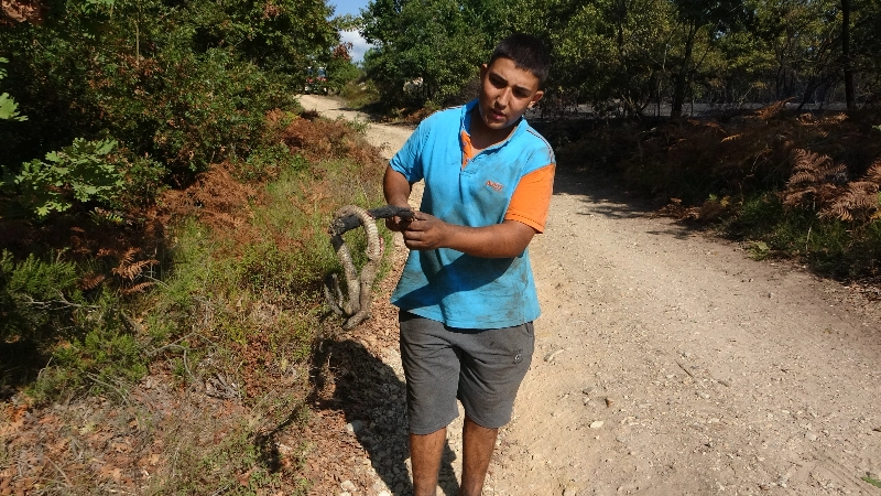 İtfaiye ekiplerine yardım eden gençlerden biri, “Yılan da yanmış. Burada bir sürü canlı var. Geliyorsunuz mangalınızı yapıyorsunuz, keyfini çıkartıyorsunuz. Doğayı koruyun, çöplerinizi atmayın. Bir de mangal yaktığınız zaman közlerini söndürüp gidin. İşten çıkmıştık, yangını gördük. Sularımızı aldık geldik. İtfaiyeci abilerimize yardım ettik. Hortumları açıp uzattık” dedi.