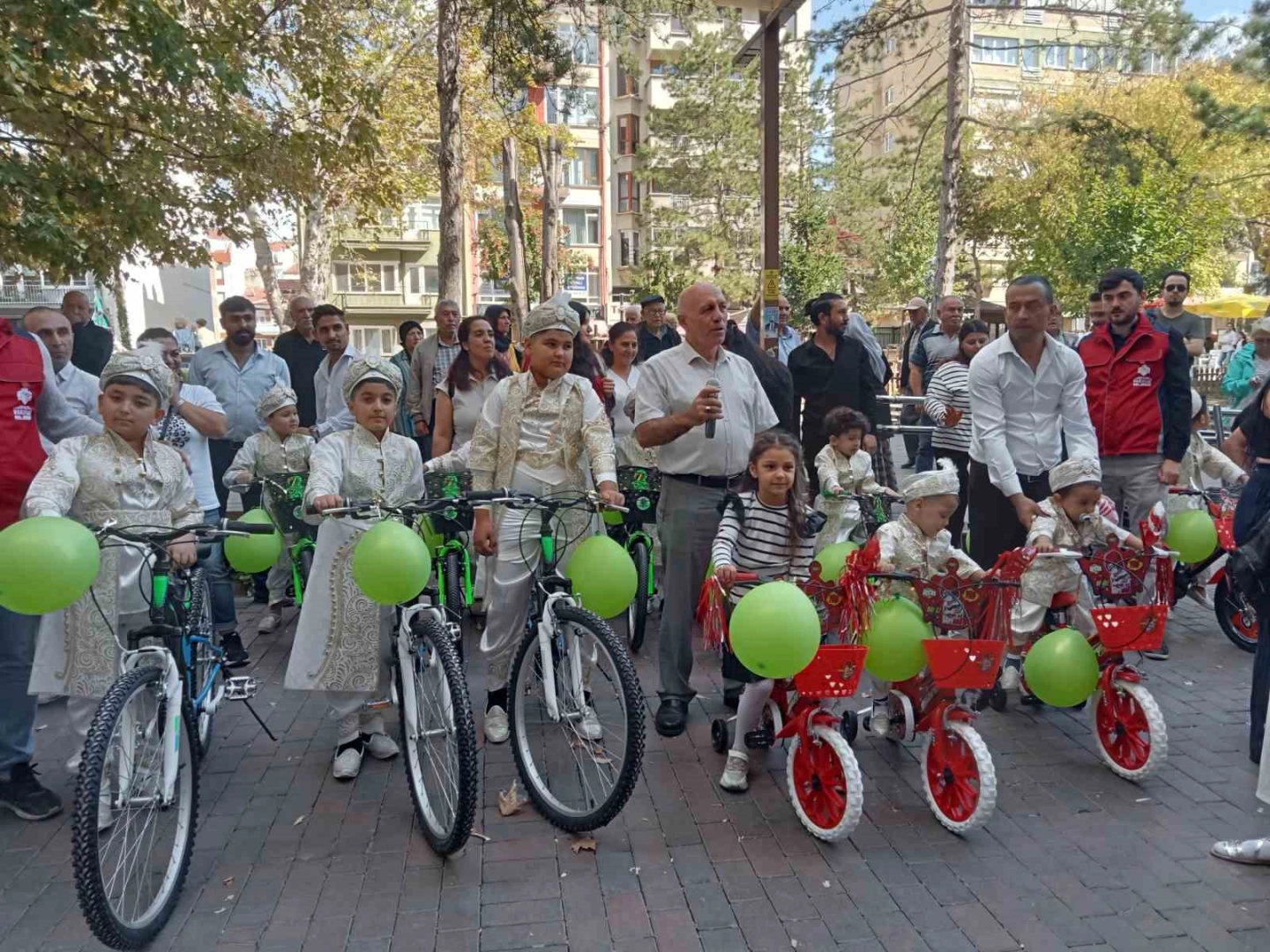 Eskişehir’de hayırseverler tarafından gerçekleştirilen sünnet şöleninde 20 yetim çocuk için özel etkinlikler düzenlenip hediyeler dağıtıldı.Kütahya Vakıflar Bölge Müdürlüğü, Eskişehir’deki yetim çocukları sevindirmek için bir araya geldi. Bu çerçevede, saat 12.00’da Hamamyolu Caddesi üzerinde bir sünnet şöleni gerçekleştirildi. Organizasyonda ilk olarak çocuklara ve ailelere yemek ikramında bulunuldu. Ardından dualar edilip halk oyunu gösterisi yapılırken, çocuklara bisiklet ve çeyrek altın hediye edildi. Programın sonunda toplu fotoğraf çekilmesi sonrası çocuklara klasik arabalarla şehir turu yaptırıldı."Onların sevinçlerine vakıflar olarak ortak olacağız"Etkinlikte konuşma yapan Kütahya Vakıflar Bölge Müdürü Ahmet Aydın, "Vakıflar Genel Müdürlüğü olarak çeşitli illerden bir dizi faaliyet yaparak etkinliklerimize devam etmekteyiz. Her vakfın bir vakfiyesi ve vakfiyede yer alan hayır şartları var. Vakfiyedeki şartları yerine getirmeye çalışıyoruz. Bu yaptığımız hizmet de 2. Beyazıd’ın vakfiyesindeki şartlardan olan kimsesiz ve yetim çocukları sünnet ettirmek. Biz bu vesileyle Eskişehir ilimizde 20 tane kimsesiz, yetim ve fakir çocukları sünnet ettirdik. Onlara çeşitli hediyeler aldık, yemek ikramında bulunduk ve şehir içerisinde klasik otomobillerle de tur gezisi yaptıracağız. Onların sevinçlerine vakıflar olarak ortak olacağız" dedi."Hayatımda ilk defa klasik arabaya bineceğim için heyecanlıyım"İlkokul 4’üncü sınıfta okuyan 9 yaşındaki Efe Can Seyirci, "Bu etkinlik yapıldığı için çok mutlu ve heyecanlıyım. Bisikletim olacağı için kendimi mutlu hissediyorum. Hayatımda ilk defa klasik arabaya bineceğim için heyecanlıyım. Bu etkinlikte emeği geçen herkese çok teşekkür ederim" şeklinde konuştu.