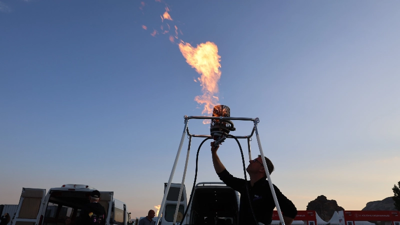 Görsel şölen sunmak için 18 ülkeden gelen 40 balon pilotu iptal haberinin ardından balon sepetlerinde bulunan börnürlerini yakarak Kapadokya'ya veda etti.