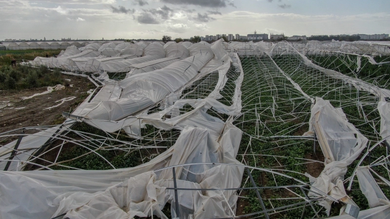Antalya'da dünden bu yana etkili olan sağanak yağmur ve şiddetli rüzgar Aksu ilçesinde hortuma dönüştü. Kemerağzı Mahallesinde saat 20.00'de çıkan hortumun ardından 21.00'de çıkan ikinci hortum hasat bekleyen ürünlerin bulunduğu 18 dönümlük sera arazisini yıkıp geçti. Demirleri ve naylonları fırlatıp atan hortum, seralardaki domates, biber ve patlıcanlara da büyük zarar verdi. Gece seralarına gelen çiftçiler gördükleri manzarayla neye uğradığını şaşırdı.