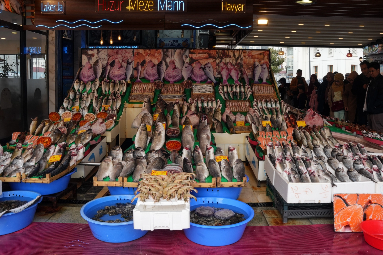 İstanbul'daki balık tezgahları şenlendi. Tezgahlarda çeşit çeşit balık görülürken, Yenikapı Balıkçılar Çarşısı balıkçıları ise vatandaşın yarıyıl tatiline gitmesinden dolayı satışların düştüğünü söyledi. Son 10 yılın en iyi sezonlarından birini yaşadıklarını söyleyen balıkçılar, geçen yıllara göre fiyatların çok uygun olduğunu söyledi. Vatandaşın en çok tercih ettiği balıklar arasında yer alan hamsinin kilosu 200 liradan satılırken; istavrit 200 liradan, çupra 500 liradan, levrek 600 liradan, çinekop 350 liradan tezgahtaki yerini aldı.