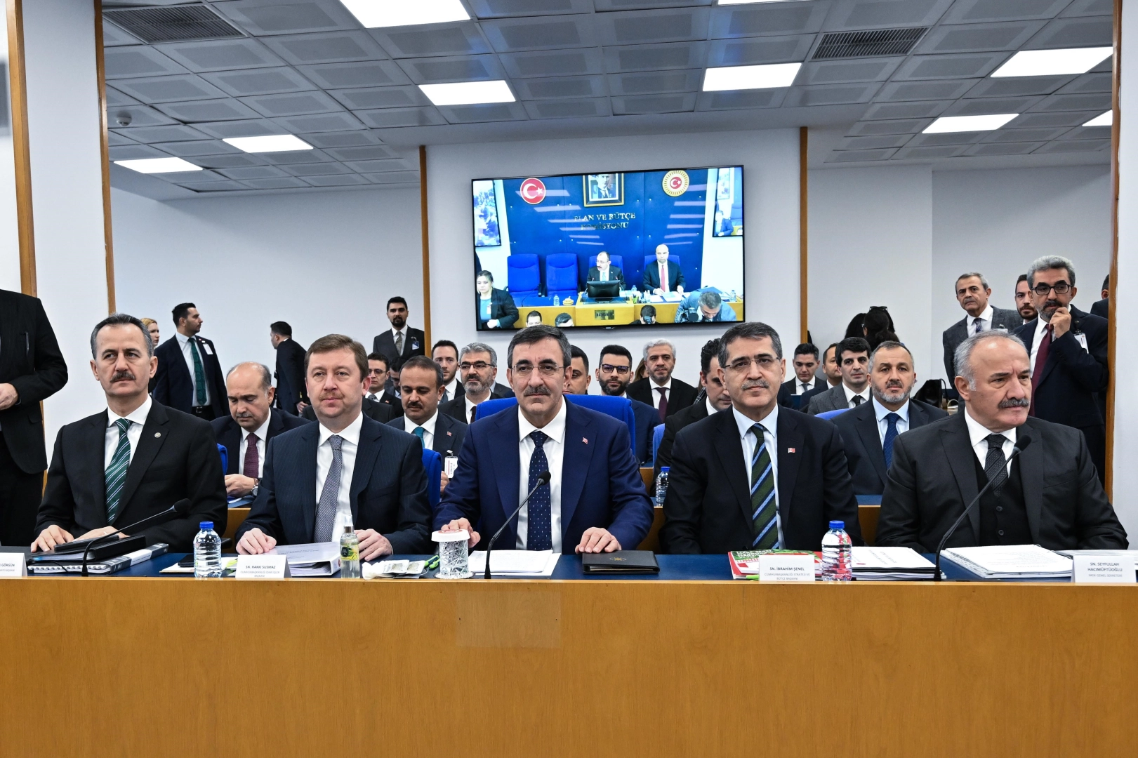 TBMM Plan ve Bütçe Komisyonu, 'Cumhurbaşkanlığı ve Cumhurbaşkanlığına bağlı, ilgili ve ilişkili kurum ve kuruluşların 2025 yılı Merkezi Yönetim Bütçe Kanunu Teklifi ve 2023 yılı Merkezi Yönetim Kesin Hesap Kanunu Teklifinin geneli ile Sayıştay Raporu'nu görüşmek üzere AK Parti Samsun Milletvekili Mehmet Muş başkanlığında toplandı. Komisyona sunum yapan Cumhurbaşkanı Yardımcısı Cevdet Yılmaz, Ekonomi Koordinasyon Kurulu, Yatırım Ortamını İyileştirme Koordinasyon Kurulu (YOİKK), Bağımlılıkla Mücadele Yüksek Kurulu, Ulusal Yapay Zeka Stratejisi Yönlendirme Kurulu ve Türkiye Coğrafi Bilgi Sistemi Kurulu'nun ilgili mevzuat çerçevesinde çalışmalarına devam ettiğini ifade etti.