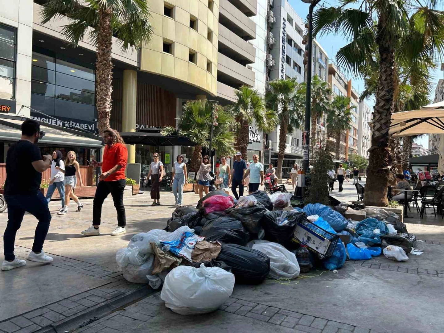 İzmir Büyükşehir Belediyesi’ne bağlı Kent Temizliği Şube Müdürlüğü’nde görevli 60’ı aşkın temizlik işçisi, talepte bulundukları ’vasıf’ konusundaki anlaşmazlık nedeniyle iş bıraktı. İşçilerin iş bırakması sonucu şehir merkezinde çöpler dağ gibi birikti. Sıcak havanın da etkisiyle etrafta rahatsız edici kokular yayılmaya başladı.İzmir’de Büyükşehir Belediyesi’ne bağlı Kent Temizliği Şube Müdürlüğü bünyesinde çalışan 60’dan fazla temizlik işçisi, talep ettikleri vasıflarını alamamaları sebebiyle 2 gündür iş bırakma eylemine başladı. İşçilerin eylemi sebebiyle merkezi yerlerden biri olan Konak ilçesi Alsancak Kıbrıs Şehitleri Caddesi ve Kordon’da çöpler birikti. Biriken çöpler, havanın da sıcak olmasıyla etrafa kötü koku yaymaya başladı. Çevre sakinleri ise kötü kokudan ve kirlilikten rahatsız olduklarını dile getirdi.“Gerekiyorsa biz kaldıracağız”Kıbrıs Şehitleri caddesinde esnafın belirli saatlerde çöplerini dışarıya çıkardığını ama 2 gündür çöplerin toplanmadığını dile getiren esnaf Murat Karaağaç, “Çöpler 2 gündür dehşet bir koku saçmaya başladı. Bayraklı’dan gelen bir koku var. Bir de böcek sorunu var. Bu çöpler böcekleri daha da artırıyor. Müşterilerimiz rahatsız oluyor. Çöpleri görüp de kalkan müşterilerimiz oluyor. Gerekiyorsa çöpleri biz kaldıracağız” diye konuştu.“Çevreye rahatsız edici bir koku veriyor”Bölge sakini Erkan Bozkurt ise “Şu anda Alsancak’ın göbeğinde çöp problemi var. Sendikayla işçiler arasında bir toplu sözleşme anlaşmazlığı olduğu için toplanılmıyor. Alsancak halkı da mağdur. Güneş bastığı zaman içindeki çöpler çevreye rahatsız edici bir koku veriyor. Böyle devam ederse köpekler, kediler çöpleri deşeleyecek” ifadelerine yer verdi.