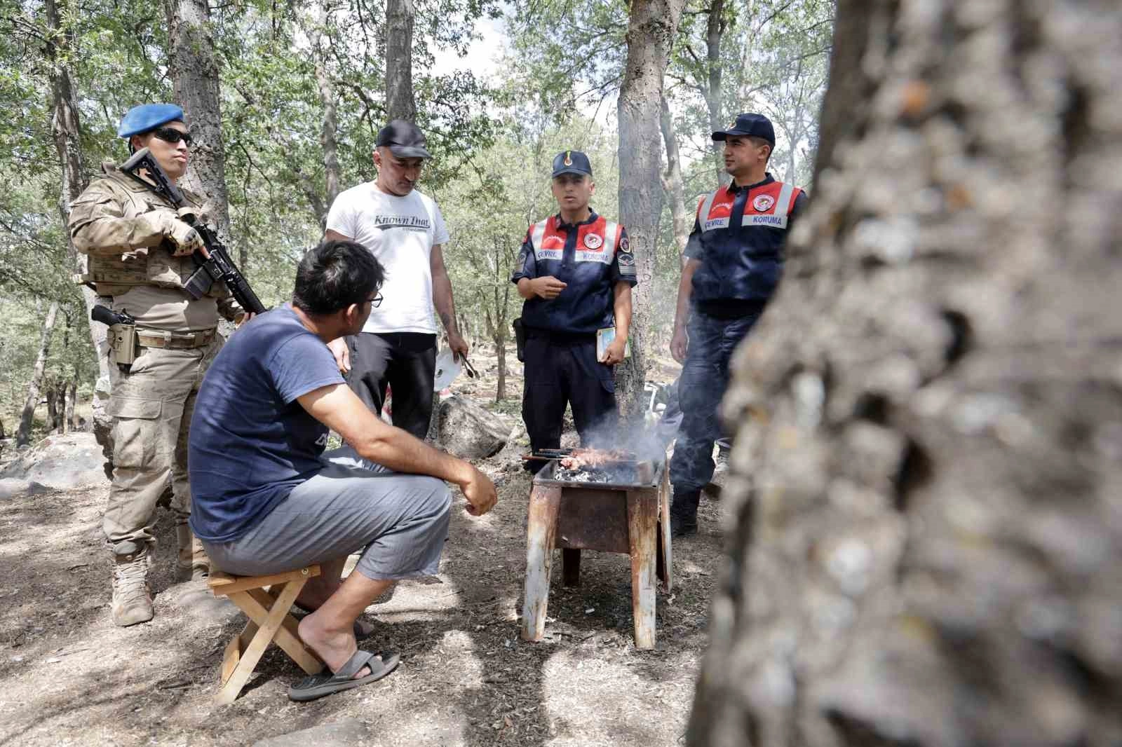 Aksaray’da orman yangınlarına karşı adeta teyakkuzda olan jandarma, Hasan Dağı’nda komando timleriyle birlikte hem denetim yapıyor hem de pikniğe gelen vatandaşlara eğitim veriyor.Orman yangınlarının önlenmesine yönelik çeşitli çalışmalar yapan Aksaray İl Jandarma Komutanlığı Çevre, Doğa ve Hayvanları Koruma Timi, haftanın 7 günü 24 saat boyunca ormanlık alanları denetliyor. Komando timiyle birlikte hem havadan dron ile hem de karadan denetim yapan jandarma ekipleri özellikle mangal yakan vatandaşları ziyaret ederek bilgilendirme yapıyor. Dron ile havadan en ücra köşeleri dahi denetleyen jandarma ekipleri vatandaşları yakılan mangal ateşinin toprak veya su ile söndürülmesi, çevrede yanıcı madde bırakılmaması, cam gibi mercek görevi gören materyallerin toplanması ve daha birçok konuda vatandaşları bilgilendirerek uyarıyor. Komando timleri ise araçların ulaşamadığı ormanlık alanda havadan yapılan denetimin yanı sıra yaya olarak da denetleyip gözetliyor. Havadan yapılan denetimde tehlike görülmesi halinde bölgeye intikal eden komandolar vatandaşları ulaşılması zor olan bazı bölgelerden de her hangi bir olumsuzluğun yaşanmaması için uzaklaştırıyor. Vatandaşlara yangına neden olabilecek tüm konuları bir bir anlatan jandarma ekipleri denetimlerini gecede de termal kameralı dronlar ile sürdürüyor. Özellikle hafta sonları vatandaşların yoğunluk göstermesi nedeniyle denetim ve eğitim faaliyetlerini artıran jandarma ekipleri bölgede sürekli devriye atarak vatandaşlara güven veriyor.Piknik yapmaya gelen vatandaşlar jandarmanın kendilerine eğitim verdiğini belirterek, verilen bilgiler doğrultusunda meydana gelebilecek bir yangını önleyeceklerini ve çıkan yangında müdahale yöntemlerini öğrendiklerini dile getirdi.
