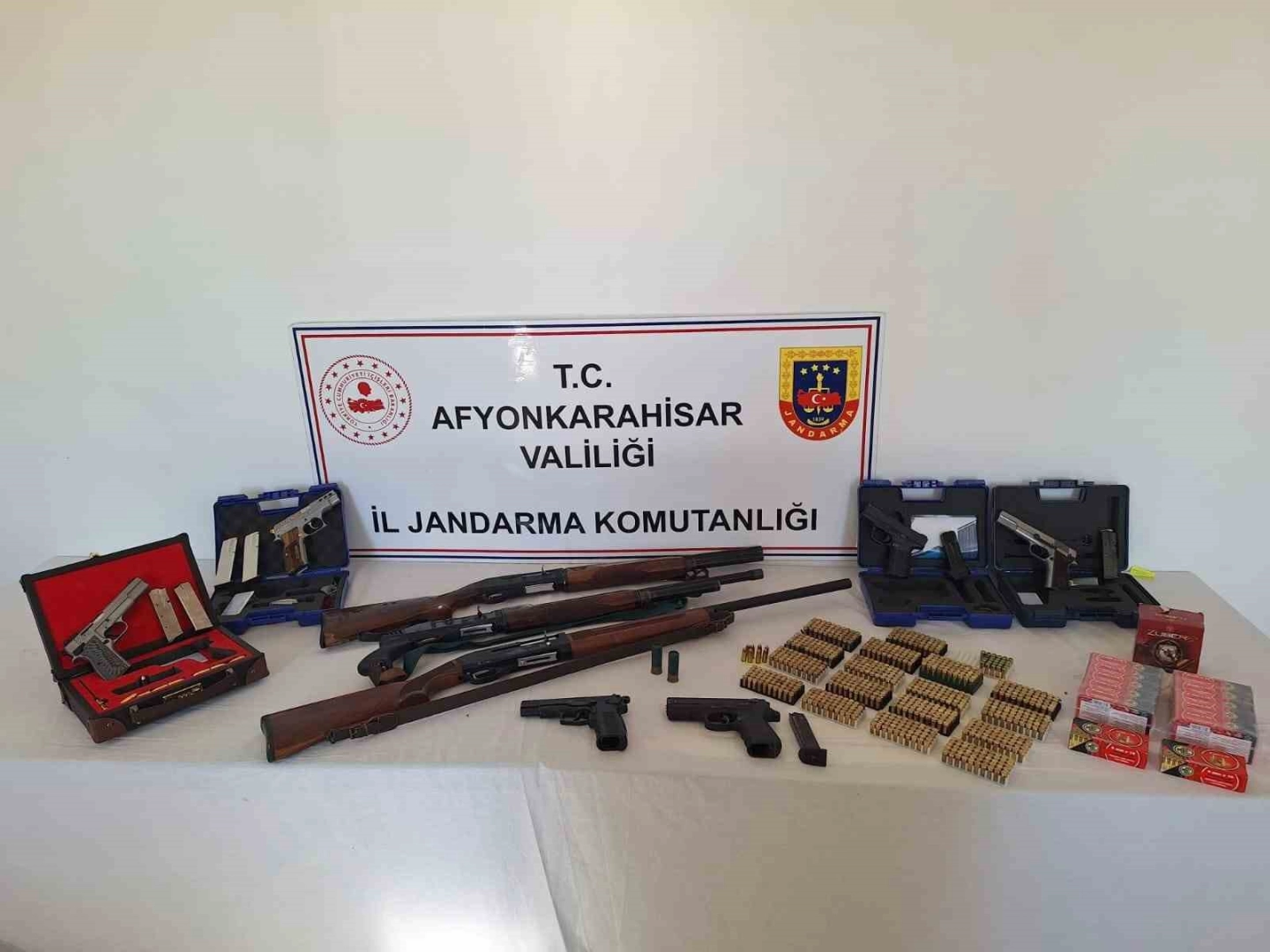 Afyonkarahisar’da gerçekleştirilen düğün ve eğlencelerde havaya ateş açan 11 maganda jandarmanın operasyonuyla gözaltına alındı.Edinilen bilgilere göre, Afyonkarahisar İl Jandarma Komutanlığı ekipler geçtiğimiz Nisan ve Mayıs ayları içerisinde Sinanpaşa ilçesine bağlı Bulca köyünde silahla havaya ateş ederek genel güvenliği tehlikeye sokan 11 şüpheli şahsı tespit etti. Ardından şahısların adreslerine baskın düzenleyen ekipler yaptıkları aramalarda 3 ruhsatsız av tüfeği, 4 tabanca, 2 kurusıkı tabanca ve bine yakın mermi ele geçirdi. Olayın ardından şahıslar gözaltına alındı.