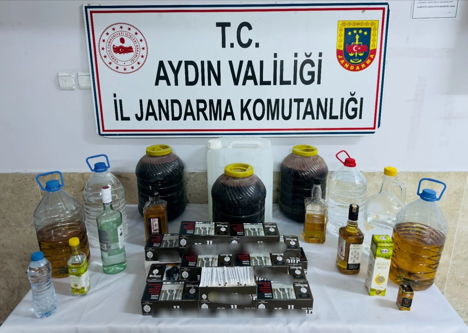 Aydın’ın Nazilli ilçesinde kaçak ürettiği alkolleri sattığı tespit edilen şüpheli jandarma ekiplerince yakalandı.Aydın İl Jandarma Komutanlığı, Kaçakçılık ve Organize Suçlarla Mücadele Şube Müdürlüğü ve Nazilli İlçe Jandarma Komutanlığı ekiplerince kaçak ve sahte alkol imalatı ve satışına yönelik koordineli çalışma gerçekleştirildi. Edinilen bilgiye göre ekipler, M.G. isimli şüphelinin Nazilli ilçesindeki ikametinde kaçak ürettiği alkolleri sattığı tespit etti. Şahsın ikametinde ve eklentilerinde yapılan aramada 90 litre el yapımı sahte alkol, 45 litre etil alkol, 3 adet aroma ve 4 bin 500 adet içi tütün doldurulmuş makaron ele geçirildi. Yakalanarak gözaltına alınan şüpheli hakkında adli işlem başlatıldı.