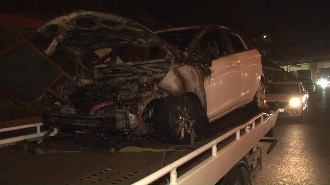 Kadıköy D100 karayolunda seyir halindeki bir otomobil alev alev yandı. Yangın itfaiye ekiplerince söndürülürken, araç küle döndü.Olay, İstanbul Kadıköy ilçesi, D100 Karayolu Ankara istikametinde saat 20.00 sıralarında yaşandı. İddiaya göre, sürücüsünün ismi öğrenilemeyen Ford marka bir otomobilden seyir halindeyken bilinmeyen bir nedenle alevler çıkmaya başladı. Alevler kısa sürede aracın tüm motor kısmını sardı. Seyir halindeki diğer sürücüler tarafından itfaiye ekiplerine haber verildi. Durumun bildirilmesi üzerine olay İtfaiye ve polis ekipleri sevk edildi. Olay yerine gelen itfaiye ekipleri alev topuna dönen aracı söndürürken, otomobil kullanılamaz hale geldi. Polis ekipleri trafiği kontrollü şekilde ilerletirken, olayla ilgili inceleme başlattı.