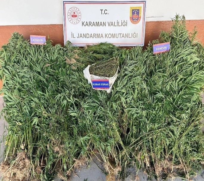 Karaman’da yetiştirdiği keneviri satmaya çalıştığı ileri sürülen 1 kişi tutuklandı.Edinilen bilgiye göre, İl Jandarma Komutanlığı Kaçakçılık ve Organize Suçlarla Mücadele (KOM) Şube ekipleri uyuşturucu madde ticareti ve kullanılmasının önlenmesine yönelik yürüttüğü çalışmada, A.Ü. isimli şahsın kenevir bitkisi yetiştirerek satmaya çalıştığı bilgisine ulaştı. Cumhuriyet Başsavcılığının talimatıyla harekete geçen ekipler, A.Ü’nün bahçesinde yaptığı aramada 926 kök kenevir bitkisi ve 5 kilo 800 gram kubar esrar ele geçirdi. İl Jandarma Komutanlığı’ndaki işlemlerin ardından adliyeye sevk edilen A.Ü., çıkarıldığı mahkemece tutuklanarak cezaevine gönderildi.