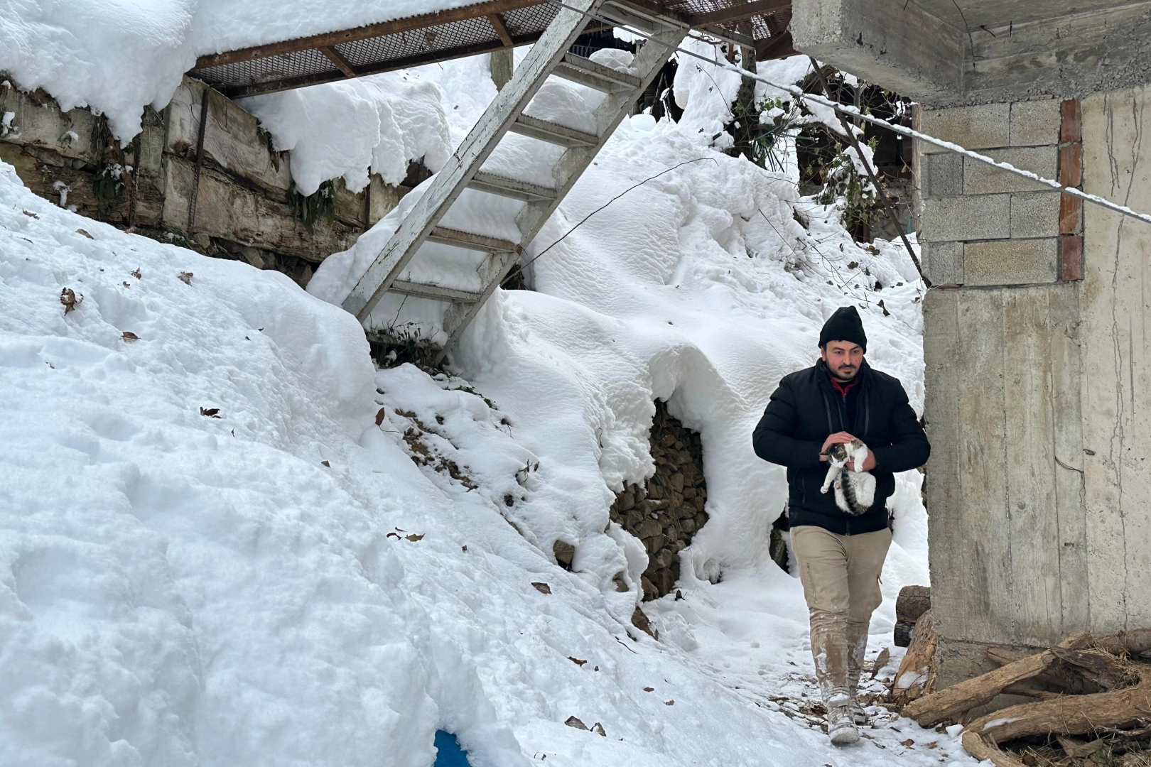 Oğlu Kerim Şahin ise “Köyde mahsur kalan kedileri beslemek ve kurtarmak için geçtiğimiz günlerde gelmiştik. O sırada bir video çektik. Büyük ilgi gördü haberlere konu oldu. Sağolsun muhtarımız ve orman işletme şefliği yolumuz açtı. Hayvanlarımız kurtardık, herkesin ilgi alakasına çok teşekkür ediyorum” derken, kardeşi Tahir Şahin ise “Yazdan kalan kedilerimiz vardı. Annesi doğum yapmıştı. Mahalleli olarak baktık, büyüttük. Köye inerken onları da götürmek istedik ama toparlayamadık. Kar yağınca da burada kaldılar. Bir kısmını daha sonra çıktık indirdik. Fakat 4 kedi burada kaldı. Götürürken de video çektik, o da büyük ilgi gördü. Bunun üzerine yol açılınca kalanları gelip alalım dedik” şeklinde konuştu.