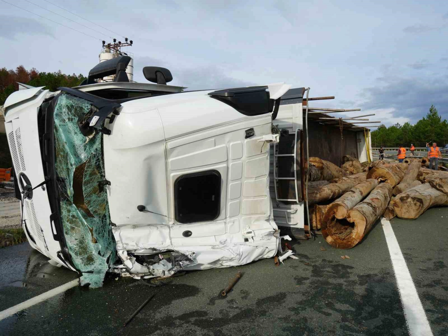 İstanbul-Kastamonu karayolunda tomruk yüklü tır, virajı alamayarak devrildi. Kazada tır sürücüsü yaralanırken, tırda bulunan tomruklar ise etrafa saçıldı.Edinilen bilgiye göre, İstanbul-Kastamonu karayolu Polis Ormanı mevkiinde Atrat Cıbır idaresindeki 06 CMK 528 plakalı Mercedes marka tır, viraja geldiği sırada sürücünün direksiyon hakimiyetini kaybetmesi sonucu devrildi. Devrilen tırdaki sürücü Atrat Cıbır yaralandı. Olay yerine çağrılan sağlık ve polis ekiplerince araçtan çıkartılan Cıbır, ambulansla Kastamonu Eğitim ve Araştırma Hastanesine kaldırıldı. Kaza nedeniyle etrafa saçılan tırdaki tomruklar ise, karşı şerit de dahil iki şeridi trafiğe kapattı. Trafik ekipleri yolda güvenlik önlemleri aldı. Karayolları ekiplerince tomrukların kaldırılması ve yolun temizlenmesi ile yol yeniden trafiğe açıldı.