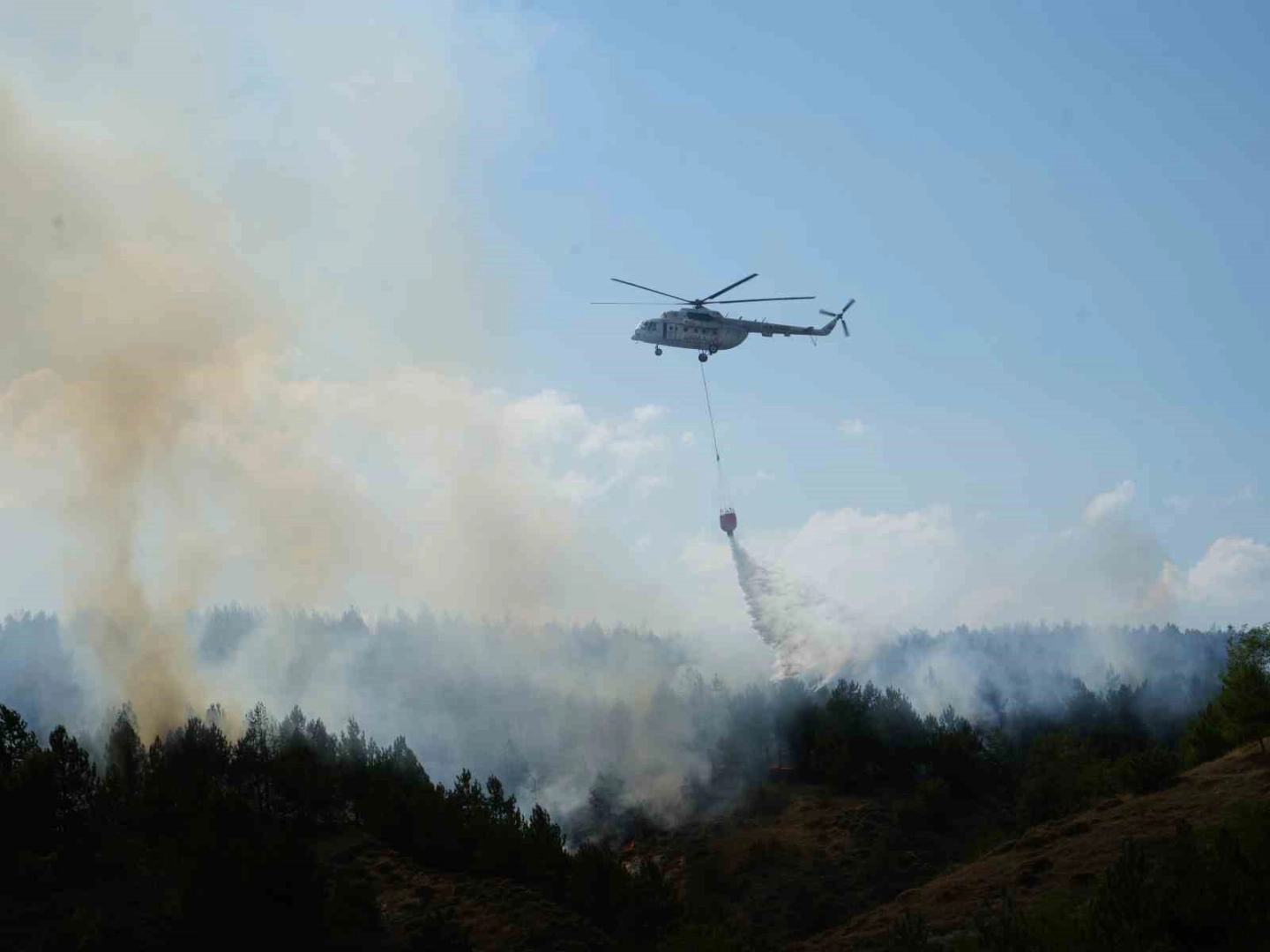 Kastamonu’da çıkan orman yangınına müdahale havadan ve karadan devam ediyor.Kastamonu’nun Alpagut köyündeki ormanlık alanda çıkan yangın, kısa sürede büyüyerek geniş alana yayıldı. Bölgeye sevk edilen itfaiye ekibi ve arazözler yangına müdahalesini yaklaşık 3 saattir sürdürüyor. Yangına havadan müdahale etmek amacıyla helikopter desteği de sağlandı. Ekipler, yangını kontrol altına almak için çalışmalarını havadan ve karadan sürdürüyor.Yangına ilk müdahale eden vatandaşlardan Mustafa Haliloğlu, "2 kilometre mesafede dumanların çıktığını gördüm. Biz hemen arkadaşlarımızla yangın mahaline geldik. Ama elimizden gelen bir şey yoktu. Sağ olsun ekiplerimiz, helikopter yangına müdahale etti. Biz dal parçaları ile söndürmeye çalıştık ama mümkün değildi. Ekiplerin müdahalesi ile yangın şu an kontrol altına alınmış gibi. Köyümüzün ciğerleri maalesef yandı. Emeği geçen herkesten Allah razı olsun" dedi.