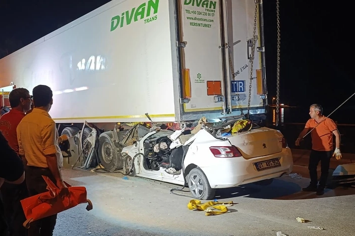 Mersin'in Silifke ilçesinde otomobil, park halindeki tıra arkadan çarpıp altına girdi. Kazayı görenler durumu 112 Acil Komuta Merkezi'ne bildirdi.