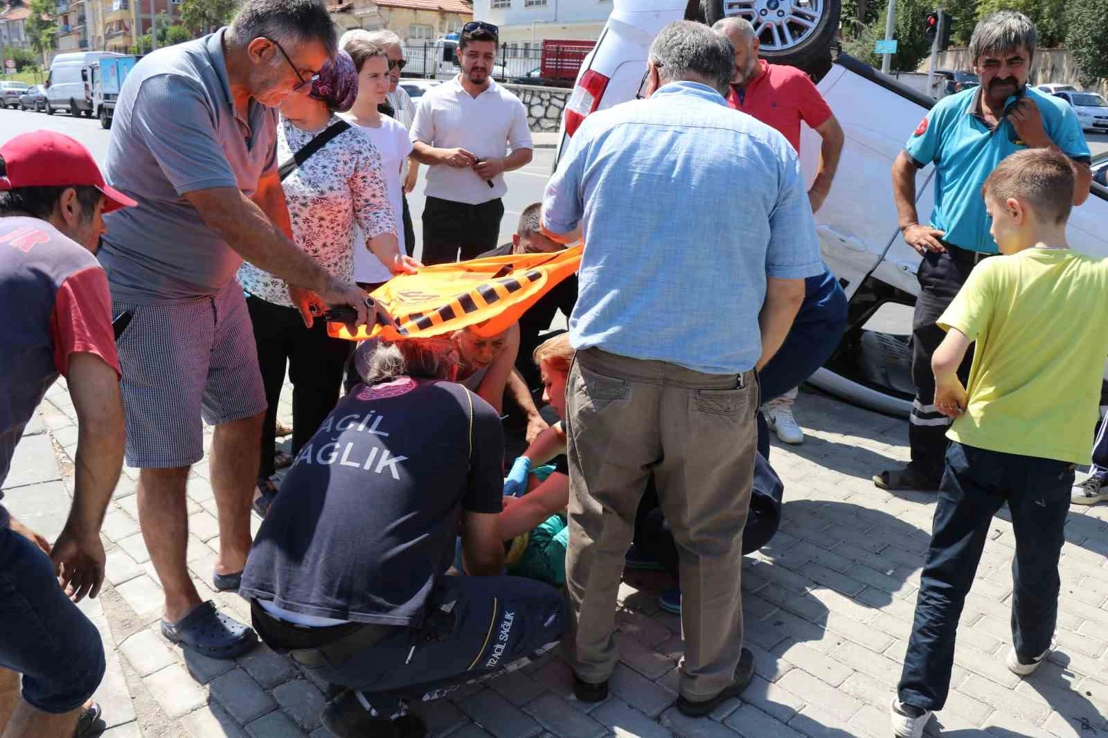 Denizli’de kavşakta ışık ihlali yapan iki araç çarpıştı. Çarpışma sonucu ters dönen hafif ticari araçta bulunan 1 kişi yaralandı.Kaza, Merkezefendi ilçesi Muratdede Mahallesi’nde meydana geldi. Edinilen bilgilere göre, Necip T. yönetimindeki 20 AE 231 plakalı hafif ticari araç ile kavşaktan geçmek istediği sırada Oktay Y. idaresindeki Almanya’dan gelen HN OS 186 plakalı otomobil çarpıştı. Çarpışma sonucu Necip T.’nin kullandığı hafif ticari araç takla atarak ters döndü. Çevredeki vatandaşların ihbarı üzerine bölgeye polis ve sağlık ekipleri sevk edildi. Necip T.’nin kullandığı araçtaki oğlu olduğu öğrenilen bir çocuk yaralandı. İlk müdahalesi çevredeki vatandaşlar tarafından yapılan çocuk, ambulansla Denizli Devlet Hastanesine sevk edildi. Yaralı çocuğun sağlık durumunun iyi olduğu öğrenilirken, iki sürücünün birbirlerini kırmızı ışık ihlali yapmakla suçlamaları ise dikkat çekti.Kazayla ilgili soruşturma başlatıldı.