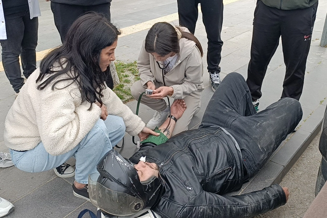 Kaza, Manavgat ilçesi Antalya Caddesi'nde meydana geldi. Edinilen bilgiye göre, seyir halindeki Mehmet B.'nin kullandığı 07 ARM 810 plakalı motosiklet, aynı istikamette seyir halindeyken park etmek için yavaşlayan Gülbahar Z.'nin kullandığı 07 BVV 905 plakalı Toyota marka otomobille çarpıştı. Çarpmanın şiddetiyle yola savrulan motosiklet sürücüsü başındaki kask sayesinde kazayı hafif yaralı olarak atlattı. Yaralı motosiklet sürücüsünün yardımına kazanın meydana geldiği yerde bulunan sağlık ocağında görevli sağlıkçılar koştu. Elinde steteskop ve tansiyon aleti ile gelen sağlık görevlisi yaralıya ilk müdahaleyi yaparak sağlık durumunu kontrol etti. Yaralı sürücü, 112 Sağlık ekiplerinin olay yerindeki müdahalesinin ardından ambulansla hastaneye kaldırıldı. Kazayı trafik polisine anlatan sürücü Mehmet B., 65-70 kilometre hızla ilerlerken, önündeki otomobilin sağ tarafa dönmek için durduğunu, frene basmasına rağmen motosikletin tekerinin kayarak otomobile arkadan çarptığını belirtti.