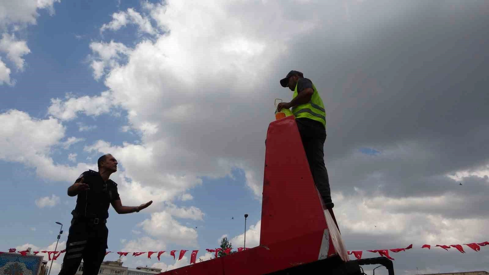 Kayseri’nin Melikgazi ilçesinde kendisine iş verilmediğini iddia eden çekici sürücüsü, çekicinin üzerine çıkarak benzinle kendini yakmaya çalıştı. Öfkeli çekici sürücüsünü polis ekipleri ikna etti.Edinilen bilgiye göre, Cumhuriyet Meydanı’nda çekici sürücüsü A.A., kendisine iş verilmediğini öne sürerek çekicinin üzerine çıkıp, benzinle kendini yakmaya çalıştı. İhbar üzerine bölgeye polis, itfaiye ve sağlık ekipleri sevk edildi. İtfaiye ekipleri herhangi bir olumsuz duruma karşı hazırda beklerken, polis ekipleri A.A.’yı eyleminden vazgeçmesi için ikna etmeye çalıştı. Ekiplerin yarım saat süren ikna çalışmaları sonucu A.A., elindeki benzin dolu bidonu ve çakmağı bırakarak çekiciden aşağı indi. Sağlık ekiplerinin kontrolü için ambulansa bindirilen A.A., daha sonra polis ekipleri tarafından karakola götürüldü.Olayla ilgili soruşturma başlatıldı.