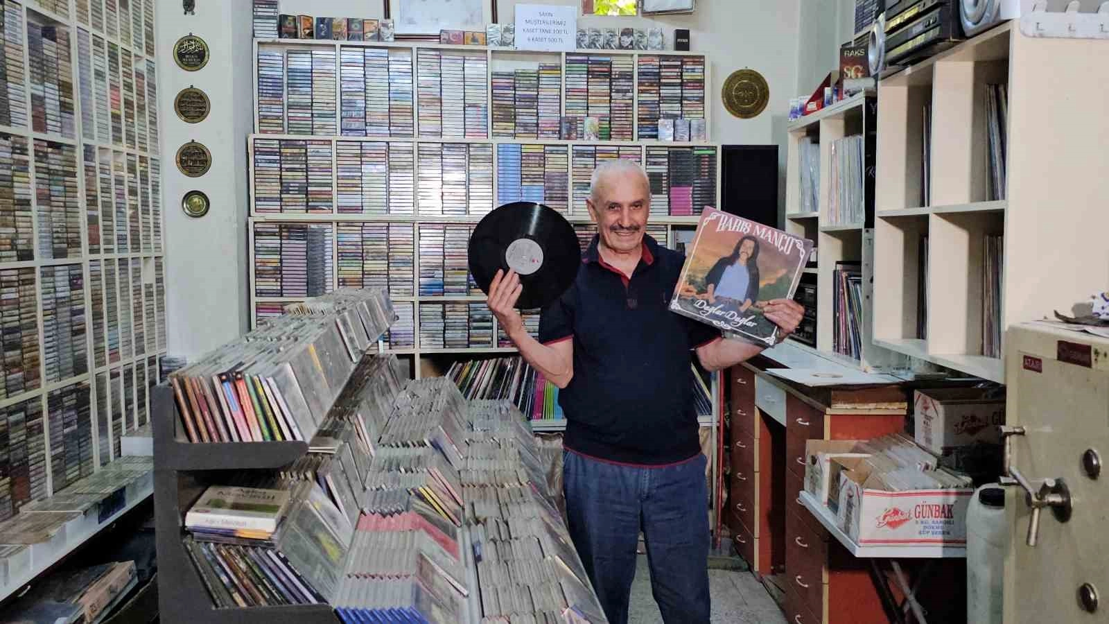 Aydın’ın Nazilli ilçesinde yaşayan 75 yaşındaki Ahmet Sert, Türk müzik tarihinde büyük yeri olan plakları ve kasetleri hala satan son bir kaç esnaftan biri. 75 yaşındaki Ahmet Sert’in yarım asra dayanan işi müzik, aşkı ise plaklar.Burada tarih sanki yeniden canlanıyor. Teknolojiye yenilen binlerce meslektaşına rağmen o inatla mesleğine devam ediyor. 75 yaşındaki Ahmet Sert’in yarım asra dayanan işi müzik, aşkı ise plaklar. Ahmet Sert, 48 yıldır plak ve kaset satıyor. Plak, taş plak ve kaset sevdası ise halen teknolojiye direniyor. Zeki Müren’den Barış Manço’ya Orhan Gencebay’dan Ferdi Tayfur’a Müzeyyen Senar’dan Malatyalı Yüksel Özkasap’a kadar rafları plak ve kasetlerle dolu. Ortam ise nostalji kokuyor. Burada tarih sanki yeniden canlanıyor. Teknolojiye yenilen onlarca meslektaşına rağmen o inatla mesleğine devam ediyor. Kapıdan kim girerse girsin aradığını bulmadan gitmiyor. Deposunda sakladığı arşiv ile kimseyi geri çevirmiyor. Sert, ünlü seslerin plak ve kasetlerini satmakla kalmamış onlarla tanışmış. İşini severek yapan Sert’ten müşteriler de memnun.Son aktif müzik marketlerden biri1960’lı yılların teknolojisi ile üretilmiş ancak günümüz teknolojisinin bile ulaşamadığı analog plaklardan çıkan o muhteşem seslerin adeta sırılsıklam bir aşığı olan Ahmet Sert, 30 yıl önce emekli olmasına rağmen halen aktif olarak mesleğini sürdürüyor. Tutku ile bağlı olduğu mesleğinde 48 yılı geride bırakmanın mutluluğunu yaşayan 75 yaşındaki Ahmet Sert’in sadece yurt içinden değil yurt dışından da oldukça fazla müdavimi var.Sırrı, ‘yok satmamak’Türkiye’deki en zengin taş plak, plak, kaset ve CD arşivine sahip son aktif müzik marketlerden biri olduğunu iddia eden Sert, sırrının ‘yok satmamak’ olduğunu söylüyor. Gurur, zengin hatıra ve duygu dolu 48 yılı geride bırakmasına rağmen ömrü yettiğince yine plaklarından ayrılmayacağını ifade eden Sert, Zeki Müren’in 1983 senesinde çıkardığı ‘Gitme, sana muhtacım’ kasetini Ege Bölgesi’nde en çok satan müzik market olunca ödül olarak bir hafta Zeki Müren’e misafir olmuş. Müzik marketinin bulunduğu Nazilli’de de Edip Akbayram, İlhan İrem, Barış Manço, Neşe Karaböcek, İzzet Altınmeşe, Ümit Besen gibi sanatçılarla imza günleri yapan Sert, onların yanına da davetli olarak İstanbul’a gitmiş.Nostalji yeniden yaşanıyorSon yıllarda teknolojik müzik ürünlerine rağmen geriye dönüşün başladığını, taş plak, plak ve kaset sektörünün yeniden hareketlendiğini İfade ediyor. Nazilli’de daha önceleri aynı işi yapan 60-70 kişinin olduğunu ancak günümüzde ise aynı işi ülke genelinde yapan nadir kişilerden birisi olduğunu kaydeden Sert, kendisi gibi müzik market işini aktif olarak yapanın kalmadığını iddia ediyor.“Müzik aşkı bizi gururlandırıyor”Ahmet Sert’in ilk müdavimlerinden olan Kemal Aslan; “1977 yılından beri Ahmet Abi’nin müşterisiyiz. Aradığımız her şeyi Ahmet abide buluyoruz. Şimdi herkes dijitale döndü. Ama biz hala plakları seviyoruz. Ahmet abideki müzik aşkı bizi gururlandırıyor, duygulandırıyor. Kendisinden hangi plağı elinde istesek elinde yoksa bile bir gün içerisinde bize temin ediyor. Zannetmiyorum ki ben Türkiye’de başka biri yok. Başka kalmadı zaten. 1977 yılından beri her istediğimizi plak olsun, kaset olsun, cd olsun, Ahmet abi bize temin ediyor. Onunla beraber biz de nostalji yaşıyoruz. Geliyoruz, burada plaklarını dinliyoruz. Bazen hiç bilmediğimiz bir plağı çıkarıp buluyor, bize dinletiyor, ondan sonra onu da alıp gidiyoruz. Yani 1977 yılından beri müziğe yaptığı katkılar çok fazla. Çeşitli sanatçılarla Nazilli’de imza günleri yaptı. Onlara misafir olarak gitti. Yani bulunmaz bir efsane ve mesleğinin duayeni” dedi.“Türkiye’de eşi benzeri olmayan bir yer”Ahmet Sert’in tamamen müzik aşkı ile dolu olduğunu ifade eden Filiz Çimen ise “Ahmet abiyi 35 senedir tanırım. Devamlı buraya gelir giderim. Gençliğimde çok kaset aldım kendisinden. Nazilli’nin en tanınmış, en sevilen en eski esnaflarından biridir. Bu işi çok çok severek yapar. Tamamen bir müzik aşkıyla doludur. Kaseti, CD’si, Taş Plağı, burada müzikle ilgili ne ararsanız bulabilirsiniz. Türkiye’de eşi benzeri olmayan bir yer. Zaten tek kalan bir yer, tek dükkan. Yani herkese tavsiye ederim. Hiçbir şey almasanız bile dinlediğiniz hatıralar size yeter. Onun Taş plak ve müzik aşkı kimsede yoktur emin olun. Mesleğini çok severek icra etmiştir. İnşallah Allah uzun ömür verir uzun yıllar da devam ettirir" diye konuştu.Ahmet Sert, müzik market işini nasıl başladığını anlatarak, “16 Şubat 1977’de çalıştığım gemiyi bıraktım. 17 Şubatta da plakçı oldum. 48 senedir müzik benim ruhumun gıdası olduğu için müzikle uğraşıyorum. Müzik adamıyım. 48 yıldır bu işi yapıyorum. 1995 senesinde emekli oldum. Emekli olalı 30 sene oldu fakat işimi sevdiğimden dolayı hala mesleğime devam ediyorum. Evde; çocuklarım, oğlanlarım, gelinler, torunlar, eşim, ‘Mesleği bırak artık, kapat dükkanı’ demelerine rağmen ben mesleğime aşığım. Mesleğimin aşığım. Bu işi yapmaya da ömrüm vefa ettikçe devam edeceğim. 50 sene olmasına yani yarım asra 2 sene kaldı. Ama ben ömrüm vefa ederse kalan 2 senede de işyerimi kapatacağıma şüpheliyim. Çünkü işimi çok seviyorum" ifadelerine yer verdi.Ünlü konukları Nazilli’de ağırladı, imza günleri yaptıÜnlü müzik insanlarını Nazilli’de düzenlediği imza günlerinde ağırladığını belirten Sert; “Burada yıllarca Barış Manço, Ümit Besen, Edip Akbayram, İlhan İrem, Yeşim, İzzet Altınmeşe, Mahmut Tuncer gibi sanatçıları da imza günlerinde ağırladık. Zaten dükkanın her taraf