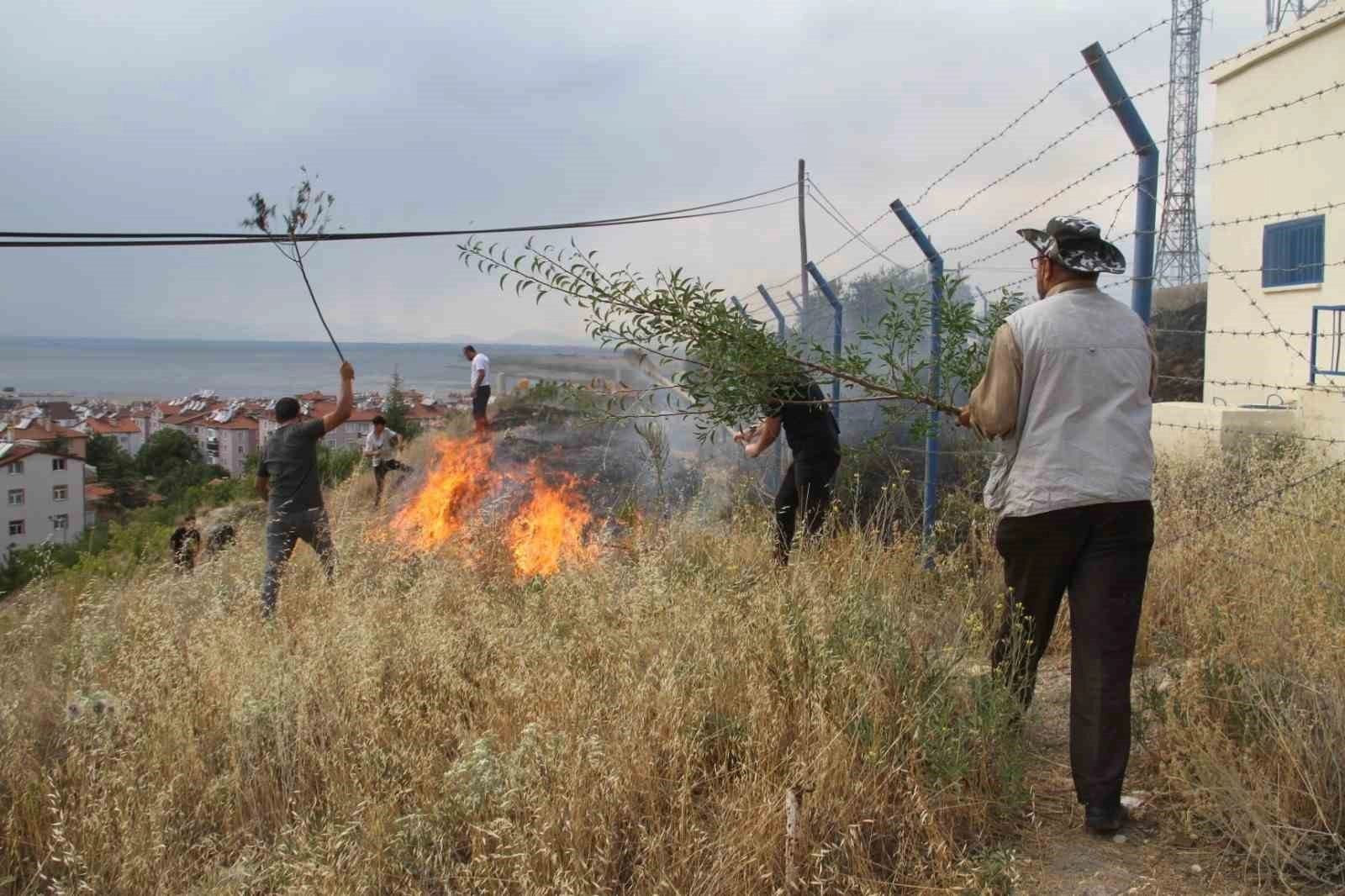 Konya’nın Beyşehir ilçesinde, yerleşim merkezindeki otluk alanda çıkan yangın korku dolu anlar yaşanmasına neden oldu. Yangının TV vericileri ile ilçe merkezinin içme suyu ihtiyacını karşılayan su deposuna sıçramaması için ellerine ağaç dalları ile kürekleri alan vatandaşlar da itfaiye ekipleri gelmeden alevleri söndürebilmek için seferber oldu.Yangın, Hacıakif Mahallesi’nde televizyon vericileri ile ilçenin içme suyu ihtiyacını karşılayan su deposu önündeki otlukta çıktı. Henüz bilinmeyen bir sebeple bölgedeki otluk alandan alevler yükseldi. Meyve ağaçları ile halı saha ve evlerin de yakınındaki alanda yangın çıkması üzerine itfaiyeye haber verildi. İtfaiye ekipleri kısa sürede adrese gelirken, ekipler gelmeden otluk alandan yükselen alevlerin su deposu ile vericilerdeki trafolara sıçramaması için seferber olan vatandaşlar yangını ellerine aldıkları kürekler ve ağaç dallarıyla söndürmeye çalıştı. İtfaiye ekiplerinin gelerek müdahalede bulunması üzerine yangın daha da genişlemeden kontrol altına alındı. Ekipler ardından soğutma çalışması başlattı.Hacıakif Mahallesi Muhtarı Hüseyin Akbulut, halı saha, içme suyu deposu ile televizyon vericileri ve trafoların bulunduğu alanın büyük bir yangın tehlikesi atlattığına dikkati çekerek, “Yangının çıkış nedenini henüz bilmiyoruz ama belediyemiz, itfaiyemiz ve vatandaşlarımızın çalışması ile kazasız belasız atlattık. Sadece otlar yandı, birkaç tane meyve ağacı da zarar gördü. Ama önemli olan bu traforalara depoyu ve vericilere sıçramamasıydı. Vatandaşlarımıza da söndürme çalışmalarına verdiği destekten ötürü çok teşekkür ediyorum” diye konuştu.