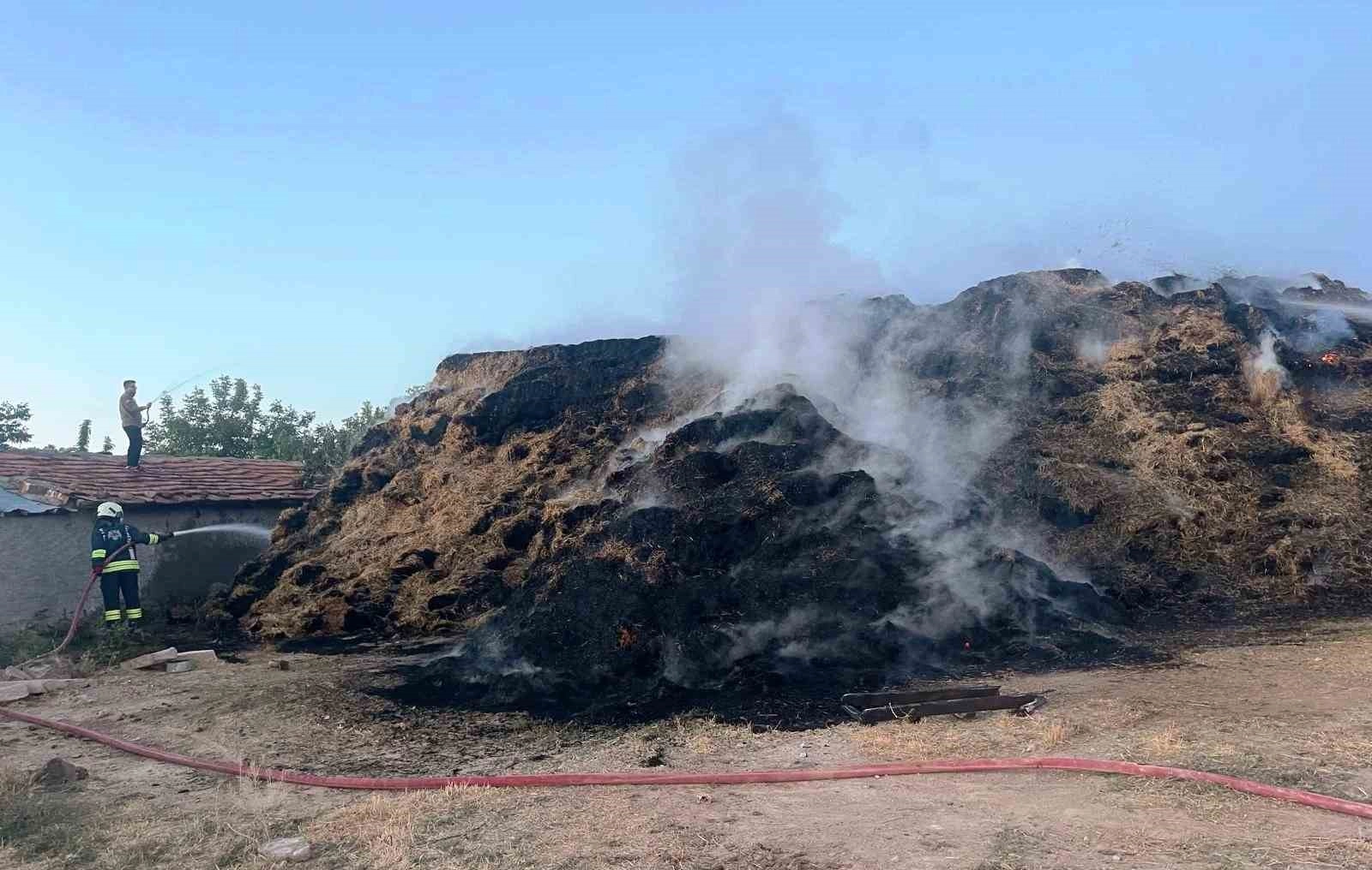 Konya’nın Kulu ilçesinde çıkan yangında saman balyaları yanarken, tavuklar telef oldu.Edinilen bilgiye göre, sabah erken saatlerde Cumhuriyet Mahallesi’nde Mehmet Ali Demirdere’nin evinin bahçesinde kışın hayvanlara yedirmek için hazırlanan 4 bin balya samanın olduğu alanda yangın çıktı. Dumanların eve kadar gelmesiyle uyanan Mehmet Ali Demirdere, 112 Acil Çağrı Merkezini arayarak yardım istedi. İhbar üzerine adrese itfaiye ve polis ekipleri sevk edildi. Yangın itfaiye ekiplerinin çalışmasıyla söndürüldü. Yangında saman balyalarının yanında bulunan kümesteki tavuklar de telef oldu, hayvan yemi dolu torbalar zarar gördü. Yanan saman balyaları belediyeye ait iş makineleri ile temizlendi.Mahalle muhtarı Halit Erdoğan, yangının neden çıktığının araştırıldığını belirtirken, yanarak kullanılmayacak hale gelen saman balyalarının tanesinin maliyetinin 50 lira olduğunu ifade etti. Polis ekipleri de yangın mahallinde inceleme yaptı.