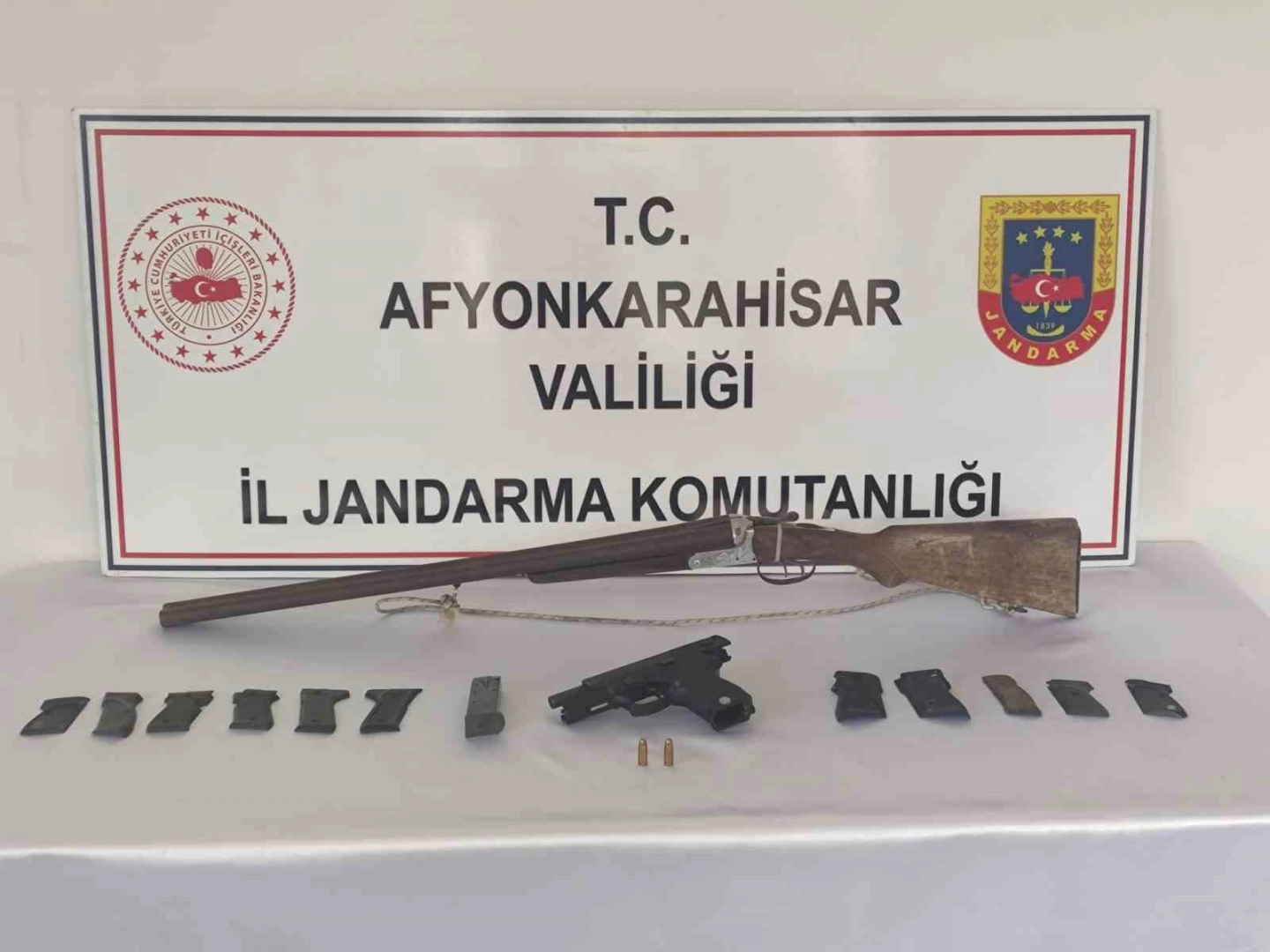 Afyonkarahisar’da yaşadığı köydeki evine atölye kurarak kurusıkı silahların namlularını açarak silah satışı yaptığı tespit edilen şahıs jandarma tarafından yakalandı.Edinilen bilgilere göre, Afyonkarahisar İl Jandarma Komutanlığı ekipleri kent merkezine bağlı Değirmendere köyünde ikamet eden A.G. isimli şahsın evine atölye kurarak silah imalatı yaptığı bilgisini aldı. Ekipler baskın yaptıkları atölyede şahsın silah tamiri ve kurusıkı tabanca namlusu açtığı, ayrıca silah alım satımı yaptığını tespit etti. Operasyonda şahıs gözaltına alınırken, ruhsatsız tabanca, ruhsatsız av tüfeği, 11 silah kabzası ve 2 mermi ele geçirdi.