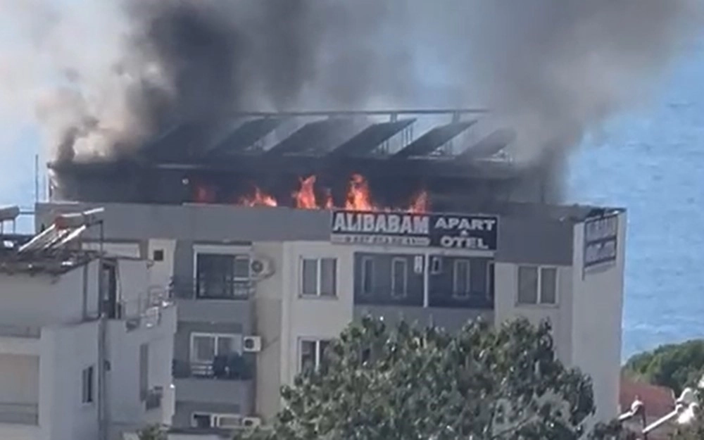 Aydın’ın Kuşadası ilçesinde bir apart otelin çatı katında çıkan yangın paniğe neden olurken, alevler itfaiye ekiplerinin müdahalesiyle söndürüldü.Olay, Hacı Feyzullah Mahallesi Botanikçi Ali Sokak üzerinde bulunan bir apart otelde meydana geldi. Edinilen bilgiye göre, apart otelin çatı katında henüz bilinmeyen bir nedenle yangın çıktı. Otelden alevlerin yükseldiğini fark eden vatandaşlar durumu 112 Acil Çağrı Merkezi’ne bildirdi. İhbar üzerine bölgeye itfaiye, sağlık ve polis ekipleri sevk edildi. Kısa sürede olay yerine gelen Aydın Büyükşehir Belediyesi İtfaiye Daire Başkanlığı ekipleri yangına müdahale etti. Ekiplerin uğraşları sonucu yangın alevler kontrol altına alınırken, yangın sonucu otelde maddi hasar oluştu. Yangının çıkış nedeninin belirlenebilmesi için çalışma başlatıldı.