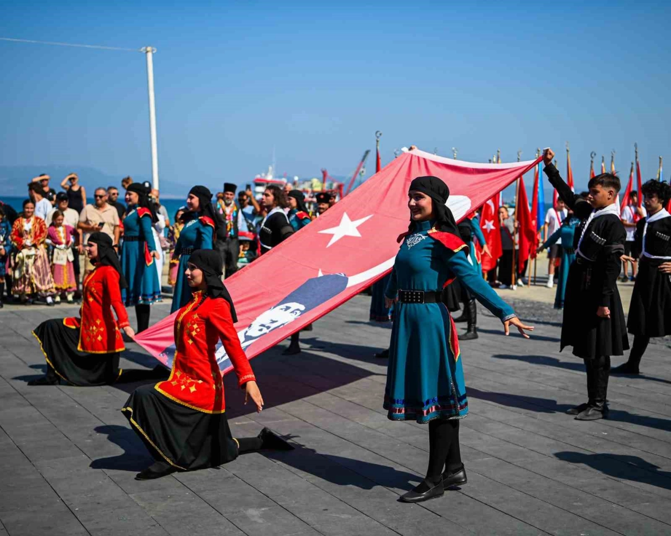 Kuşadası’nın düşman işgalinden kurtuluşunun 102’nci yıl dönümü kentte büyük bir coşkuyla kutlandı. Esareti simgeleyen kız çocuğunun Efeler tarafından kurtarılışını anlatan canlandırma ile başlayan kutlamalar Atatürk Meydanı’nda devam etti.Kuşadası’nın düşman işgalinden kurtuluşunun 102’nci yıl dönümü kentte düzenlenen çeşitli etkinliklerle kutlandı. Kutlamalar sabah saat 09.45’te Kaymakamlık binasında gerçekleşen kız çocuğunun Efeler tarafından kurtarılışını simgeleyen temsili törenle başladı. Atatürk Meydanı’nda düzenlenen resmi törenle devam eden kutlamalara Kuşadası Kaymakamı İbrahim Keklik, Kuşadası Belediye Başkan Vekili Tibet Özer, Kuşadası Garnizon Komutanı Albay Mehmet Toker, idari ve mülki amirler, siyasi parti ve sivil toplum kuruluşlarının temsilcileri ile vatandaşlar katıldı. Kaymakam İbrahim Keklik, Belediye Başkan Vekili Tibet Özer ve Kuşadası Garnizon Komutanı Albay Mehmet Toker’in Atatürk Anıtı’na çelenk sunmasıyla başlayan tören, saygı duruşu ve İstiklal Marşı’nın okunmasının ardından gerçekleştirilen halk oyunları gösterileri ile sona erdi."Atatürk ilke ve devrimlerine bağlı genç kuşaklar yetiştireceğiz"Törende konuşan Kuşadası Belediye Başkan Vekili Tibet Özer, Kuşadası’nın düşman işgalinden kurtuluşunun 102’nci yıl dönümünü kutlamanın mutluluğunu yaşadıklarını belirterek “Sözlerime bizlere şu an üzerinde yaşadığımız bu cennet ülkeyi ve ilçeyi, canları pahasına savaşarak armağan eden Önderimiz Gazi Mustafa Kemal Atatürk ve silah arkadaşları başta olmak üzere tüm Kurtuluş Savaşı şehitlerimizi sevgi, saygı ve şükranla anarak başlamak istiyorum. Gazi Mustafa Kemal Atatürk’ün 19 Mayıs 1919’da Samsun’a çıkarak ateşlediği bağımsızlık meşalesinin tüm Anadolu’yu dalga dalga aydınlatması ile harlanan ulusal bağımsızlık ve kurtuluş savaşı ruhu, bayrak yarışı misali elden ele aktarılarak 30 Ağustos 1922’de büyük zaferle sonuçlanmıştır. Kuşadası’nın yiğit evlatlarının da omuz verdiği kurtuluş savaşımız, ulusal bağımsızlığımızı sağlamanın yanında, devrim ilkeleri ışığında tesis edilen halkçı ve demokratik kurumların ve çağdaş bakış açısının tohumlarını da Anadolu topraklarına ekmiştir. Kuşadası’nı işgal eden emperyalist güçlere karşı verilen mücadelenin ilçemiz açısından zaferle taçlandığı 7 Eylül günü kutlu olsun. Kuşadalılar olarak Ulu Önder Gazi Mustafa Kemal Ataürk’e ve aziz şehitlerimize olan borcumuzu ancak Atatürk ilke ve devrimlerine bağlı genç kuşaklar yetiştirerek ödeyebiliriz" dedi.Kuşadası Belediye Başkanı Ömer Günel de kentin düşman işgalinden kurtuluşunun 102’nci yıl dönümü dolayısıyla bir mesaj yayımladı. Başkan Günel mesajında, "Kuşadası 102 yıl önce düşman işgalinden şehitlerimizin vatan sevgisi ve aziz kanıyla kurtuldu. Başta Ulu Önderimiz Mustafa Kemal Atatürk olmak üzere tüm şehitlerimize minnettarız. 7 Eylül düşman işgalinden kurtuluşumuzun yıl dönümü kutlu olsun" ifadelerine yer verdi.Kuşadası’nda kutlama etkinlikleri, bugün saat saat 20.00’de Kuşadası Belediyesi tarafından düzenlenecek olan fener alayı ile devam edecek. Kısmet Otel Kavşağı’ndan başlayacak olan fener alayı, İsmail Cem Dostluk ve Barış Meydanı’nda sona erecek. Fener alayının ardından meydanda saat 20.30’da Kuşadası Belediyesi Kent Orkestrası sahne alacak.