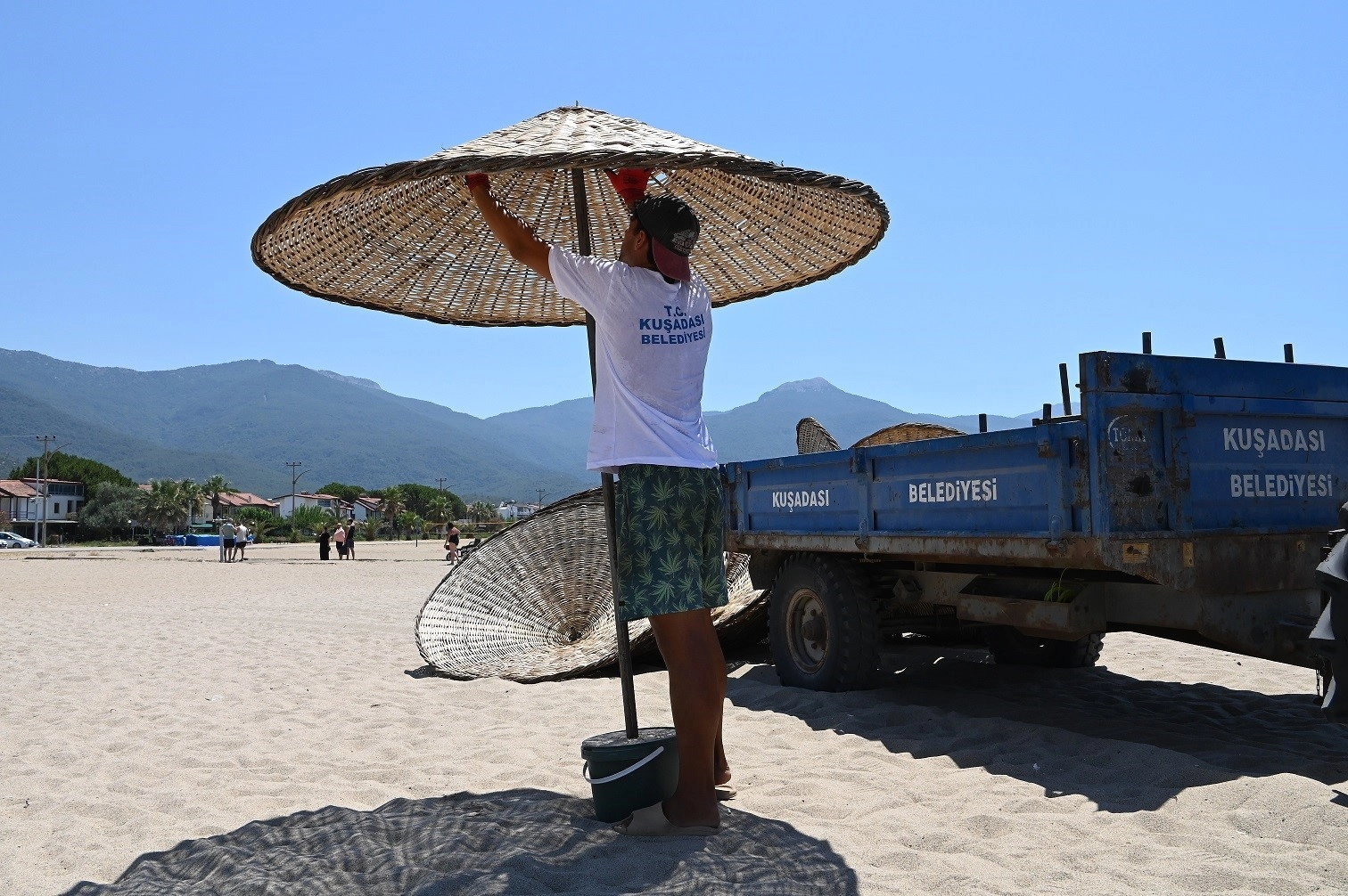 Kuşadası Belediye Başkanı Ömer Günel tarafından plajlarda başlatılan ücretsiz şemsiye ve şezlong uygulaması bölge sakinleri ve tatilciler tarafından memnuniyetle karşılanıyor.Kuşadası Kaymakamlığı ile yapılan protokolle 10 yıllığına Kuşadası Belediyesi’ne devredilen halk plajlarında ücretsiz şezlong ve şemsiye uygulaması devam ediyor. 7/24 esasına göre mesai yapan ekipler, bir yandan sahillerde bakım, onarım ve temizlik çalışmalarını aralıksız sürdürürken bir yandan da belirlenen program dâhilinde şezlong ve şemsiye yerleştiriyor.Kuşadası’nın tüm halk plajlarını tatilciler için hazır hale getiren Kuşadası Belediyesi ekipleri son olarak Güzelçamlı sahiline 100 adet şemsiye yerleştirerek vatandaşların kullanımına sundu. Şemsiye ve şezlonglardan ücretsiz olarak yararlanan vatandaşlar, Başkan Ömer Günel’e teşekkür etti.