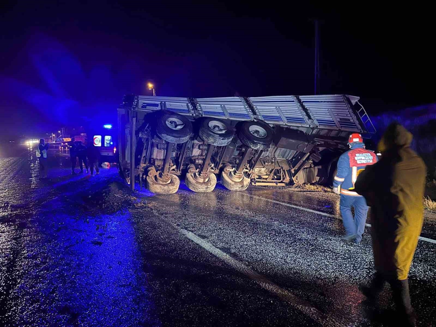 Malatya’nın Doğanşehir ilçesinde maden yüklü tırın devrilmesi sonucu meydana gelen kazada 1 kişi yaralandı.Edilen bilgiye göre, Adıyaman istikametinden Malatya istikametine giden Recep Tayyip K. idaresindeki 31 B 6053 plakalı maden yüklü tır, Savaklı köyü girişinde yağmur sonrası kayganlaşan yolda direksiyon hakimiyetinin kaybedilmesi sonucu kontrolden çıkarak karşı şeride geçti. Devrilen tırın sürücüsü yaralandı.Yaralı, kaza yerine gelen sağlık ekipleri tarafından yapılan ilk müdahalesinin ardından Doğanşehir Devlet Hastanesi’ne kaldırıldı. Kaza sonrası Malatya -Adıyaman karayolu bir süre trafiğe kapanırken yapılan çalışmaların ardından yol bir süre sonra tekrar trafiğe açıldı.Kazayla ilgili inceleme sürüyor.