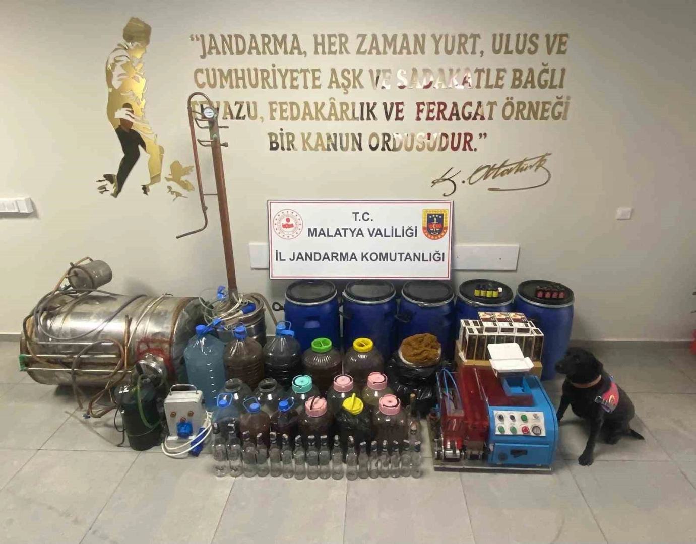 Malatya’da, jandarma tarafından düzenlenen operasyonda 380 litre sahte rakı ile 130 litre şarap ele geçirildi. Olayda 3 zanlı gözaltına alındı.Malatya’nın, Battalgazi ile Yeşilyurt ilçelerinde sahte alkol üretimi yapıldığı bilgisi üzerine İl Jandarma Komutanlığı ekiplerince 3 ayrı adrese eş zamanlı operasyon düzenlendi. Düzenlenen operasyonlarda 380 litre sahte rakı, 130 litre şarap, 16 adet ölçüm kiti, 14 adet malt aroması, 2 adet gliserin, 1 adet kaynatma kazanı, 1 adet fermente işlemi için kullanılan su deposu, 4 adet makaron dolum makinesi, 18bin 540 adet dolu/boş makaron, 24 kg tütün ele geçirildi.Olayda 3 zanlı gözaltına alındı. Zanlıların jandarmadaki işlemlerinin sürdüğü bildirildi.