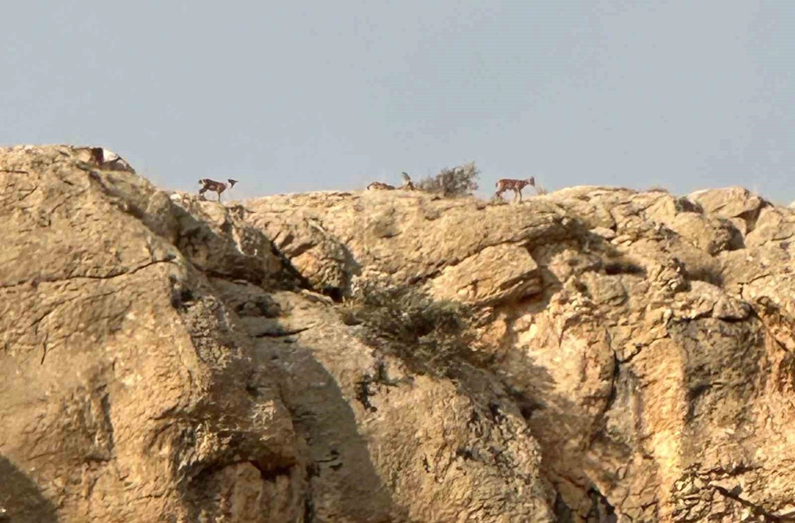 Malatya’da nesli tehlike altında olan yaban keçileri, yüksek dağlık kesimlerde sürü halinde görüntülendi.Türkiye’de nesli tükenme tehlikesi altında olduğu için koruma altında olan yaban keçileri, Malatya’nın zirvesi Beydağı’nda sürü halinde görüntülendi. Yaban keçileri, bölgede doğa yürüyüşü yapan vatandaşların cep telefonu kamerasına yansıdı.Görüntülerde yaban keçilerinin dağların yüksek kesimlerine doğru ilerledikleri görülüyor.