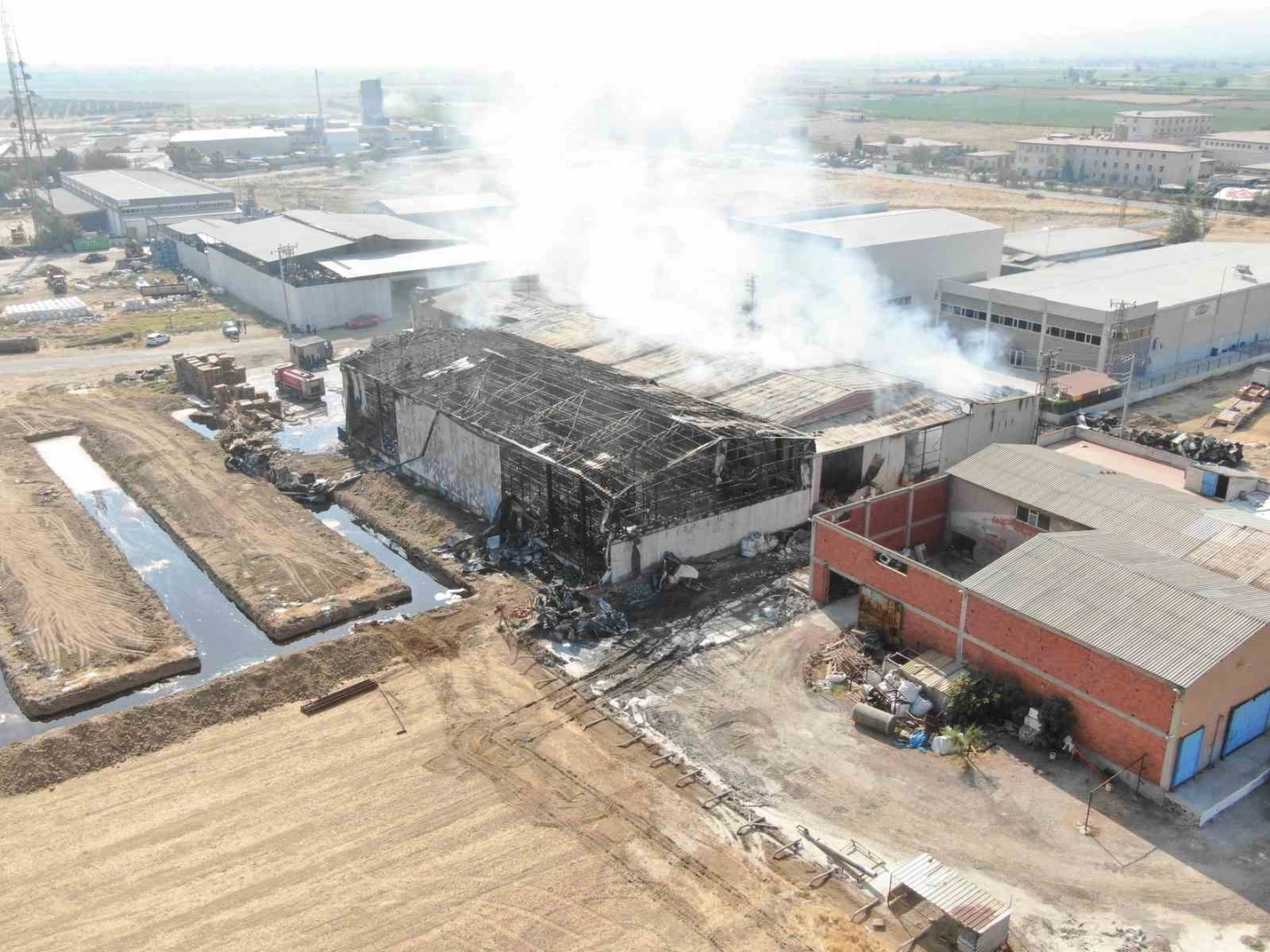 Manisa’nın Salihli ilçesinde bulunan bir kuru gıda deposunda çıkan yangının bıraktığı hasar havadan görüntülendi. 3 saat süren çalışmaların sonunda enkaza dönen deponun tamamen yandığı görüldü. Yangının 150 milyon TL’lik maddi zarara yol açtığı öğrenildi.Yangın, Salihli’nin Durasıllı Mahallesi mevkisinde bulunan bir kuru gıda deposunda çıktı. İddiaya göre, henüz belirlenemeyen nedenle çıkan yangında, alevler kısa sürede deponun tamamını sardı. Durumun bildirilmesi üzerine olay yerine çok sayıda itfaiye ekibi sevk edildi. Depodaki yangına, Manisa Büyükşehir İtfaiye Daire Başkanlığına bağlı Salihli İtfaiye Amirliği ekiplerinin yanı sıra, Alaşehir, Turgutlu ve Kula ilçelerinden 15 itfaiye aracı ve jandarma TOMA aracı ile müdahale edildi. Zaman zaman patlamaların da meydana geldiği yangın, yaklaşık 3 saat sonra kontrol altına alındı.Ekiplerin depodaki soğutma çalışmaları sürerken, yangının bıraktığı hasar ise havadan görüntülendi.Öte yandan can kaybının yaşanmadığı yangının 150 milyon TL’lik maddi zarara yol açtığı öğrenildi.