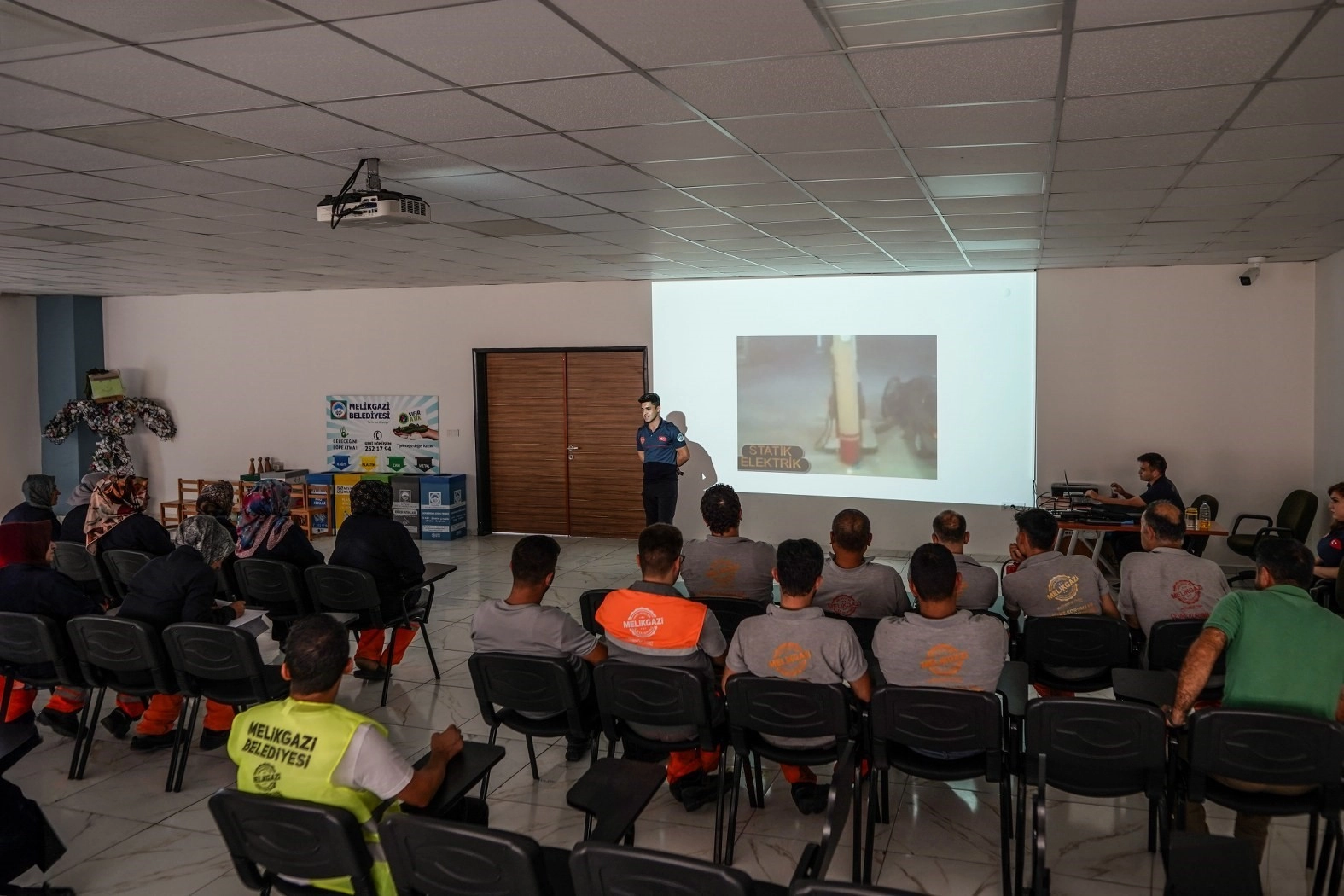 Melikgazi Belediyesi, iş sağlığı ve güvenliğine yönelik önemli bir adım atarak, personeline İş Sağlığı ve Güvenliği Eğitim Programı kapsamında yangın, yangından korunma ve yangına müdahale eğitimleri düzenledi. Melikgazi Belediyesi Geri Dönüşüm Eğitim Tesisinde düzenlenen eğitim programı, Büyükşehir Belediyesi İtfaiye Dairesi Başkanlığı’nın uzman eğitmenleri tarafından verildi.Eğitim programı teorik eğitimle başladı. Bu eğitimlerde, yangınla mücadele teknikleri, yangın güvenliği önlemleri ve yangın anında yapılması gerekenler gibi konular kapsamlı bir şekilde ele alındı. Teorik eğitimlerin ardından, personeller bina dışında gerçekleştirilen yangın tatbikatı ile öğrendiklerini pratikte uygulama fırsatı buldular.“Hemşehrilerimizin güvenliği önceliğimizdir”Eğitimlerin önemini vurgulayan Melikgazi Belediye Başkanı Doç. Dr. Mustafa Palancıoğlu, “Yangın ve doğal afetler karşısında daha bilinçli bir toplum oluşturmak ve herhangi bir sıkıntı anında nasıl hareket edilmesi gerektiği konusunda eğitimler vermek bizim için son derece önemli. Bu eğitimle, personellerimiz herhangi bir yangın durumunda en kısa sürede ne yapılması gerektiğini öğrenmiş oldu. Yangına donanımlı bir şekilde müdahale edebilmek, hayat kurtarıcı bir öneme sahiptir” dedi.
