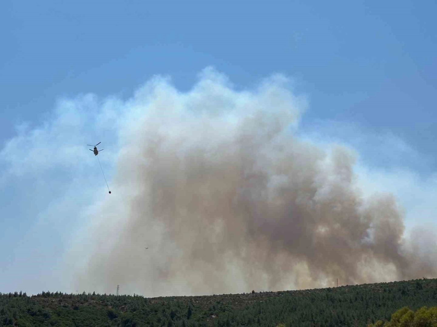 İzmir’in Menderes ilçesinde ormanlık alanda çıkan yangın, ekiplerin müdahalesi sonucu kontrol altına alındı.Menderes ilçesinde ormanlık alanda saat 13.35’te henüz bilinmeyen bir sebeple çıkan yangına İzmir Orman Bölge Müdürlüğü ekipleri 5 uçak, 9 helikopter, 25 arazöz, 7 su ikmal, 3 dozer ve 3 yer ekibi ile müdahale etti.Alevler ekiplerin havadan ve karadan müdahalesi sonucu kontrol altına alınırken bölgede soğutma çalışmalarının sürdüğü öğrenildi.