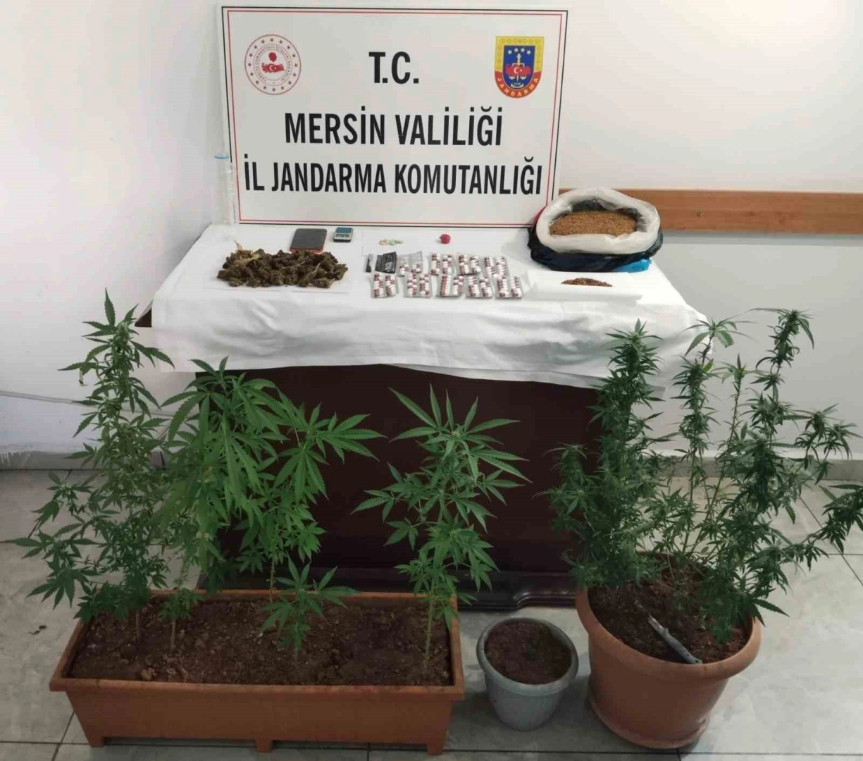 Mersin’de jandarma ekiplerinin düzenlediği operasyonlarda uyuşturucu madde ticareti yapan 3 şüpheli yakalandı.Alınan bilgiye göre, İl Jandarma Komutanlığı ekipleri, uyuşturucu ile mücadele çerçevesinde çalışma yaptı. Ekiplerin çalışmasında merkez Yenişehir ve Mut ilçelerinde 3 şüpheli belirlendi. Belirlenen şüphelileri takibe alan ekipler operasyon düzenledi. Operasyonda 3 şüpheli yakalanarak gözaltına alındı. Şüphelilerin ev ve eklentilerinde yapılan aramada 1 kilo 55 gram bonzai, 248 gram kubar esrar, 10 kök kenevir, 157 adet uyuşturucu hap, 12 gram metamfetamin, 5 adet uyuşturucu madde kullanma aparatı, 2 adet hassas terazi ile 7 bin 600 TL nakit para ele geçirildi.Şüpheliler adli işlemleri yapılmak üzere jandarmaya götürüldü.