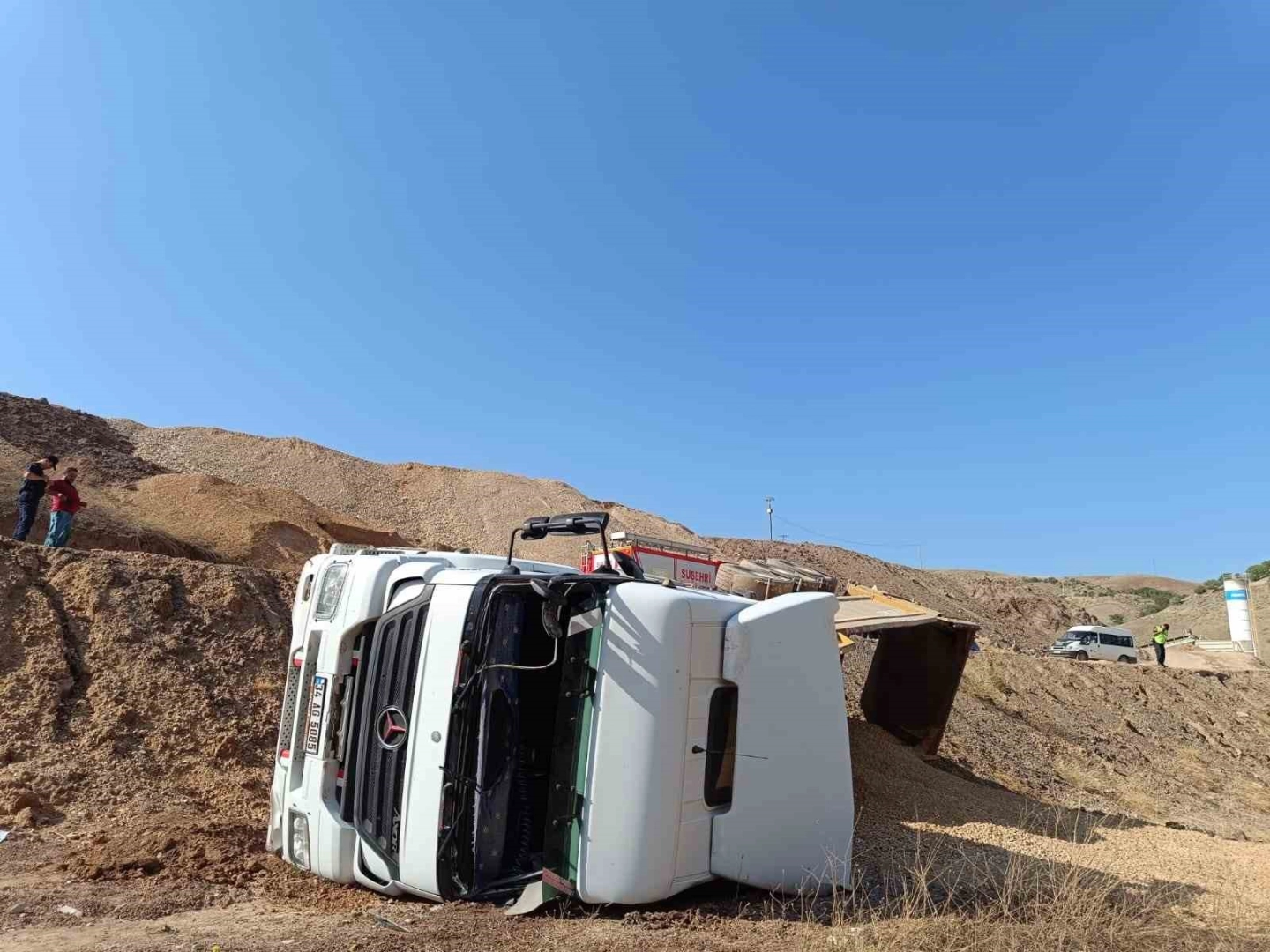 Sivas’ın Suşehri ilçesinde mıcır yüklü kamyonun devrilmesi sonucu meydana gelen kazada sürücü hayatını kaybetti.Edinilen bilgilere göre kaza Arpacı köyü yakınlarında meydana geldi. Şevket Tekten idaresindeki 34 G 5085 plakalı mıcır yüklü kamyon sürücüsünün direksiyon hakimiyetini kaybetmesi sonucu devrildi. Kazada kamyon sürücüsü olay yerinde hayatını kaybetti. Sürücünün kalp krizi geçirmiş olabileceği ihtimali üzerinde durulurken kaza ile ilgili soruşturma başlatıldı.