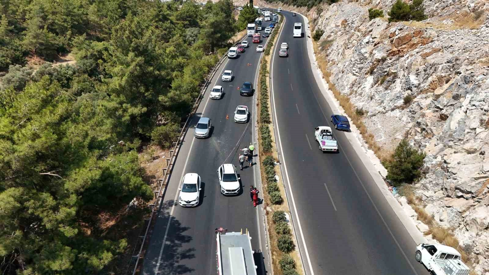 Muğla’nın Milas ilçesinde TIR ile otomobilin çarpışması sonucu meydana gelen kazada, 4 kişi yaralandı.Kaza, Milas-Bodrum karayolu Karakaya Mevkii’nde kent merkezine seyir halinde olan TIR’ın, aynı yönde ilerleyen bir otomobile çarpması sonucu gerçekleşti. Kazada otomobilde bulunan 4 kişi yaralandı. 112 Acil Çağrı Merkezine bilgi verilme i üzerine olay yerine Muğla Büyükşehir Belediyesi itfaiye, sağlık ve trafik ekipleri sevk edildi.Yaralılar, itfaiye ekiplerinin yardımıyla otomobilden çıkarılarak, ambulanslarla hastaneye sevk edildi.