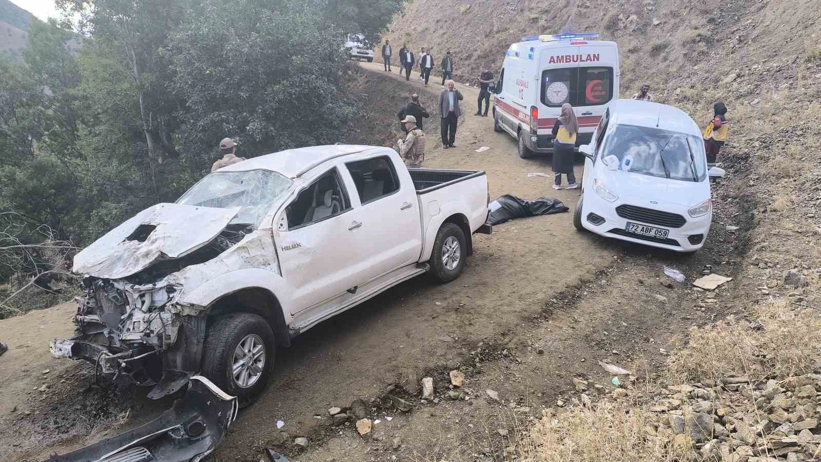 Irak’ın kuzeyindeki Pençe-Kilit Operasyonu bölgesinde şehit olan Piyade Sözleşmeli Er Maşallah Abakay’ın yakınlarının içinde bulunduğu aracın şarampole devrilmesi sonucu meydana gelen kazada ölü sayısı 2’ye yükseldi.Alınan bilgilere göre, şehit Piyade Sözleşmeli Er Maşallah Abakay’ın cenaze törenine katılmak için Batman’dan Muş’a gelen yakınlarının içinde bulunduğu 21 BF 066 plakalı pikap, Şenyayla bölgesinde kontrolden çıkarak şarampole yuvarlandı. Çevredekilerin 112 Acil Çağrı Merkezini araması üzerine bölgeye sağlık ve jandarma ekipleri sevk edildi. İsmi öğrenilemeyen sürücünün direksiyon hakimiyetini kaybetmesi sonucu 70 metre yükseklikten şarampole devrilen araçtaki Zümrüt Atış olay yerinde hayatını kaybederken, yaralanan 5 kişi hastaneye kaldırıldı. Muş Devlet Hastanesine kaldırılan yaralılardan Pihan Atış da yapılan tüm müdahalelere rağmen kurtarılamadı. Atış’ın hayatını kaybetmesi ile kazada ölü sayısı 2’ye yükseldi.