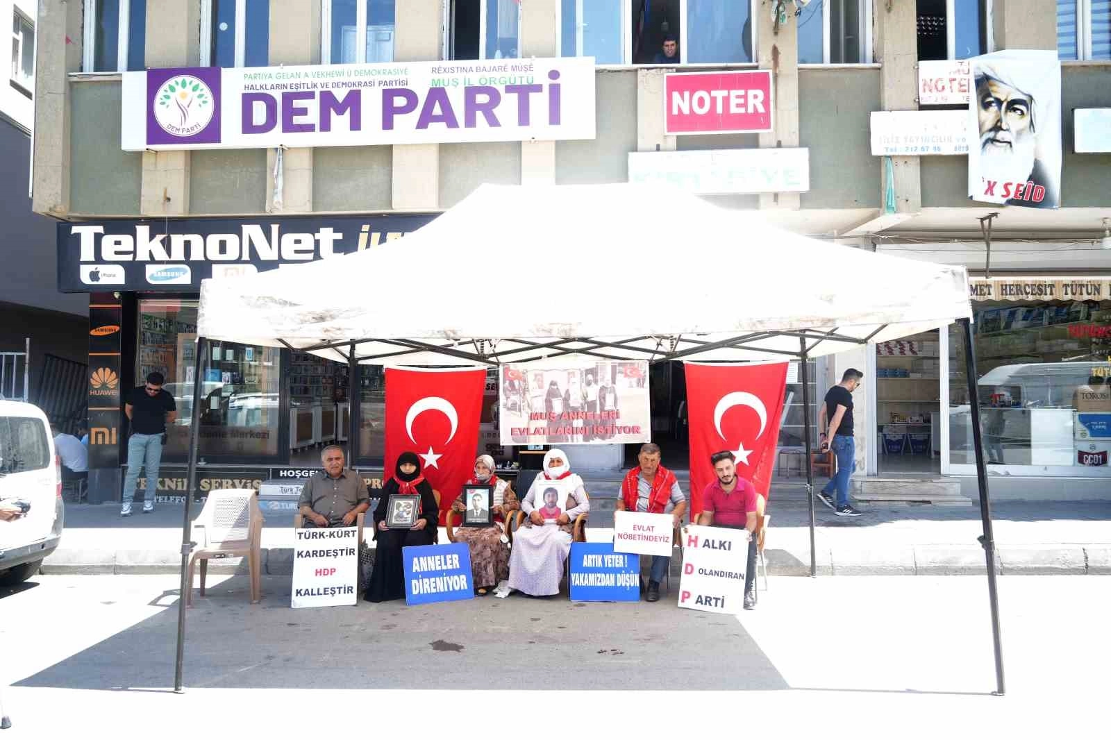 Muş’ta çocukları terör örgütü PKK tarafından kaçırılan aileler, DEM Parti il binası önündeki oturma eylemini kararlılıkla sürdürüyor. Çocuklarının geri dönmesi için nöbetlerine devam eden aileler, kamuoyundan destek istiyor.Muş’ta çocuklarını terör örgütü PKK’nın pençesinden kurtarmak isteyen ailelerin DEM Parti il binası önündeki eylemi devam ediyor. Aileler, çocuklarının en kısa sürede güvenli bir şekilde evlerine dönmesini beklerken, toplumun da bu konuda destek olmasını istiyor. Çocuklarına kavuşma ümidiyle her hafta çarşamba günü DEM Parti il binası önünde bir araya gelen aileler, "Anneler direniyor" ve "Yeter artık evlatlarımızı bırakın" pankartları açtı. Anne ve babalar, yıllardır hasretle bekledikleri çocuklarına teslim olmaları için çağrıda bulundu.8 yıl önce oğlunun Bursa’da kandırılarak götürüldüğünü söyleyen Alaattin Koçhan, DEM Parti’den ve PKK’dan oğlunu istediğini söyledi. Oğluna teslim olması çağrısında bulunan Koçhan, “Olum Ersin neredesin. Senden hiçbir haber yok. Dağda, taşta, taşların dibinde devlet kurulmaz. Çık gel, orada senin için yok. Her zaman bir tarafımız boşta. Bayramda, seyranda hep senin yokluğunu hissediyoruz. Bir devlet vatandaşın vazgeçmez, yeter ki sen dürüst olarak çık gel. Devlet sana bir şey yapmaz. Sesimi duyuyorsan çık gel. Pişmanlık duyanların teslim olması için eylemimize devam edeceğiz” diye konuştu.Anne Şahinaz Özcan da 8 yıldır oğlundan haber alamadığını belirterek, “8 yıldır oğlum kayıptır ve hiçbir haber alamıyorum. 3,5 yıldır burada eylem yapıyoruz. Dağda bir kişi kalana kadar eylemimizi sürdürmeye devam edeceğiz. DEM Parti’den ve PKK’dan oğlumu istiyorum” dedi.