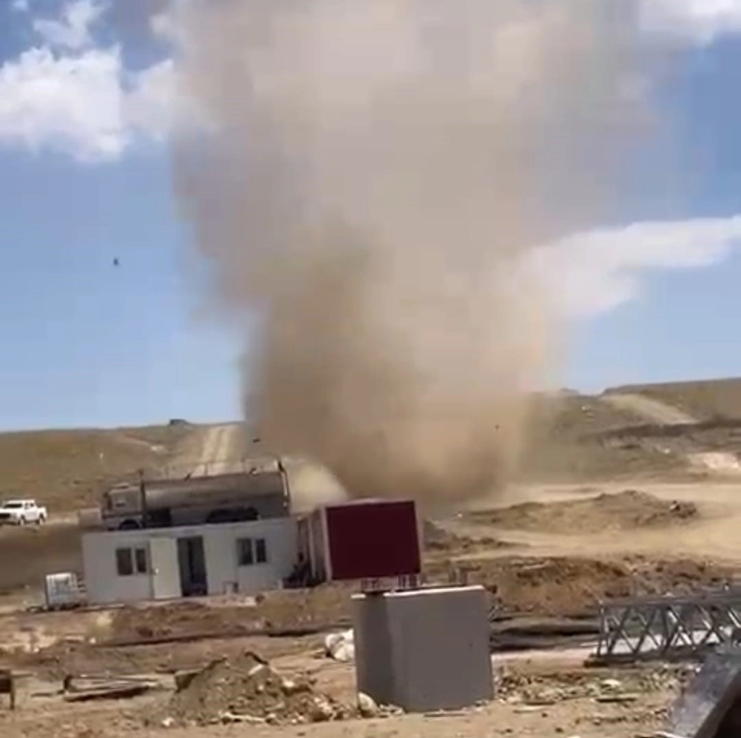 Muş’ta meydana gelen hortum kısa süreli paniğe neden oldu.Muş’ta aniden başlayan hortum, şantiyede çalışan işçiler tarafından cep telefonu ile kaydedildi. 2 bin 600 rakımlı Kurtik Dağı bölgesinde inşaatı devam eden rüzgar enerjisi santrali (RES) şantiyesinde meydana gelen hortum, kısa süreli paniğe neden oldu. Hortum sırasında herhangi bir can veya mal kaybı yaşanmadı.Şantiye işçileri tarafından cep telefonu ile kaydedilen görüntülerde, hortumun şiddeti net bir şekilde görülüyor.Hortumun ardından yapılan incelemelerde, şantiyede herhangi bir hasarın meydana gelmediği tespit edildi. İşçiler, günlük çalışmalarına kaldıkları yerden devam etti.