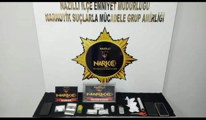 Aydın’ın Nazilli ve Yenipazar ilçelerinde yapılan uyuşturucu operasyonunda yüklü miktarda uyuşturucu madde ele geçirilirken, 4 zehir taciri ise tutuklandı.Nazilli Narkotik Suçlarla Mücadele Büro Amirliği ekiplerinin uyuşturucu madde ticaretine yönelik operasyonları hız kesmeden devam ediyor. Son iki haftada Nazilli ve Yenipazar ilçelerinde yapılan operasyonlarda, 125 gram Metamfetamin, 387 gram Esrar, 11 gram Eroin, 5 Adet Ruhsatsız Silah, 5 adet Uyuşturucu Madde ticaretinde kullanılan hassas terazi ele geçirildi. Şüpheli şahıslardan M.K, M.A, S.A.ve İ.G Uyuşturucu Madde Ticareti suçundan tutuklanırken bir şüpheli şahıs adli kontrol şartıyla serbest bırakıldı. Operasyonlar kapsamında 18 şahsa Uyuşturucu Madde Kullanmak suçundan adli işlem yapıldığı öğrenildi.