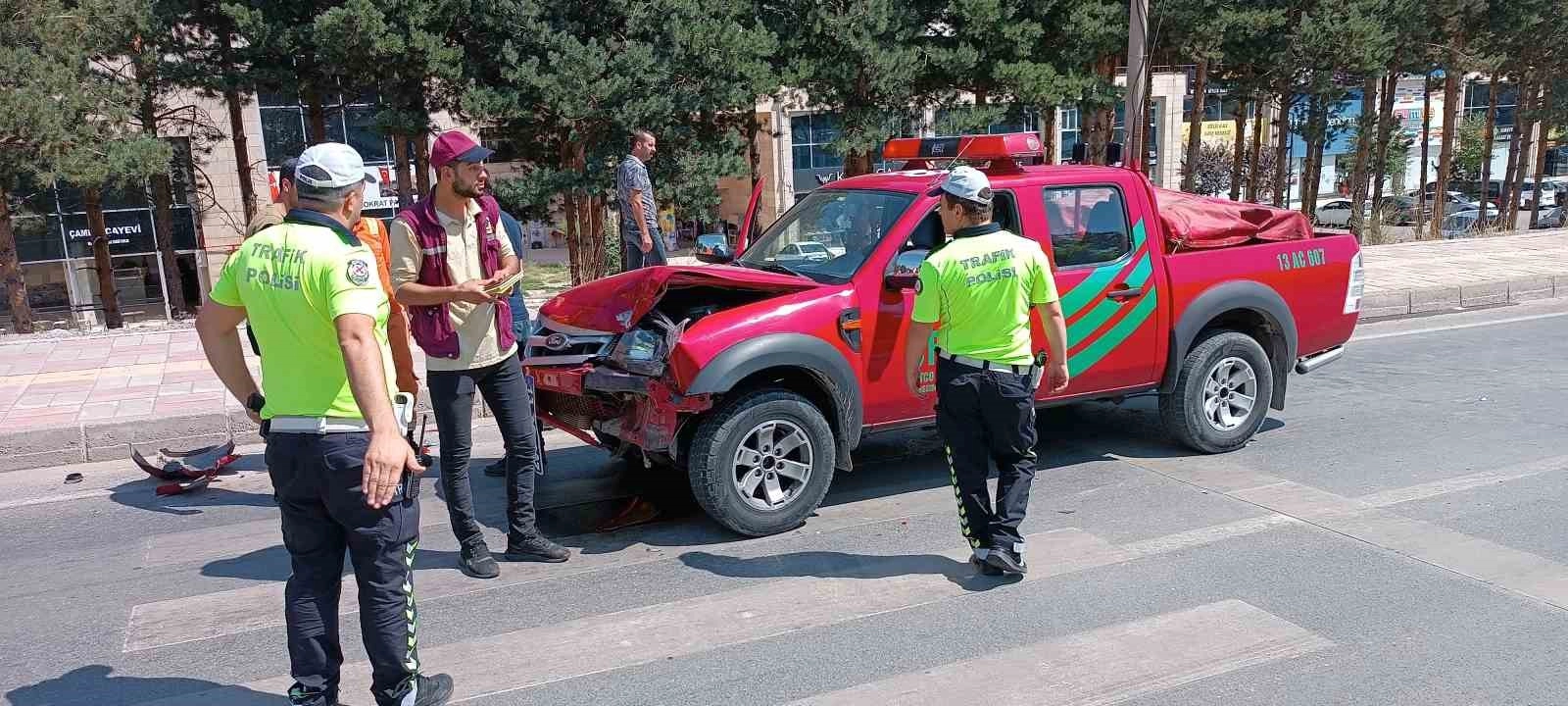 Bitlis’in Tatvan ilçesindeki Nemrut Krater Gölü bölgesinde çıkan ot yangınına müdahaleye giden resmi araç kaza yaptı.Kaza, Bitlis merkezde bulunan Türkiye Odalar ve Borsalar Birliği (TOBB) İlk ve Ortaokulu civarında meydana geldi. Aynı yöne giden 06 FS 7544 plakalı otomobil ile Bitlis Orman İşletme Müdürlüğüne ait 13 AC 607 plakalı resmi araç henüz belirlenemeyen bir sebeple çarpıştı. Kazada şans eseri ölü ve yaralı olmazken, her iki araçta da maddi hasar meydana geldi.Kısa süreliğine trafiğe kapanan yol, kazaya karışan araçların çekiciyle kaldırılmasının ardından yeniden açıldı.