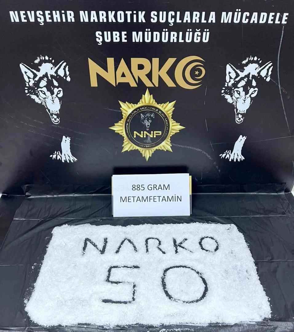 Nevşehir İl Emniyet Müdürlüğü ekiplerince yapılan çalışmalarda; Van’dan Antalya’ya uyuşturucu taşıyan bir kişi yakalandı.Edinilen bilgiye göre Narkotik Suçlarla Mücadele Şube Müdürlüğü ekipleri; uyuşturucu madde kullanan ve ticaretini yapan şahısların deşifresine yönelik çalışma yaptı. Çalışmalar çerçevesinde Van’dan Antalya’ya giden S.K’nin aracı durduruldu. Şüphelinin üstünde, eşyalarında ve aracında yapılan aramada 885 gram metamfetamin ele geçirildi.Gözaltına alınan S.K., sevk edildiği adliyede çıkarıldığı mahkemece tutuklanarak cezaevine gönderildi.