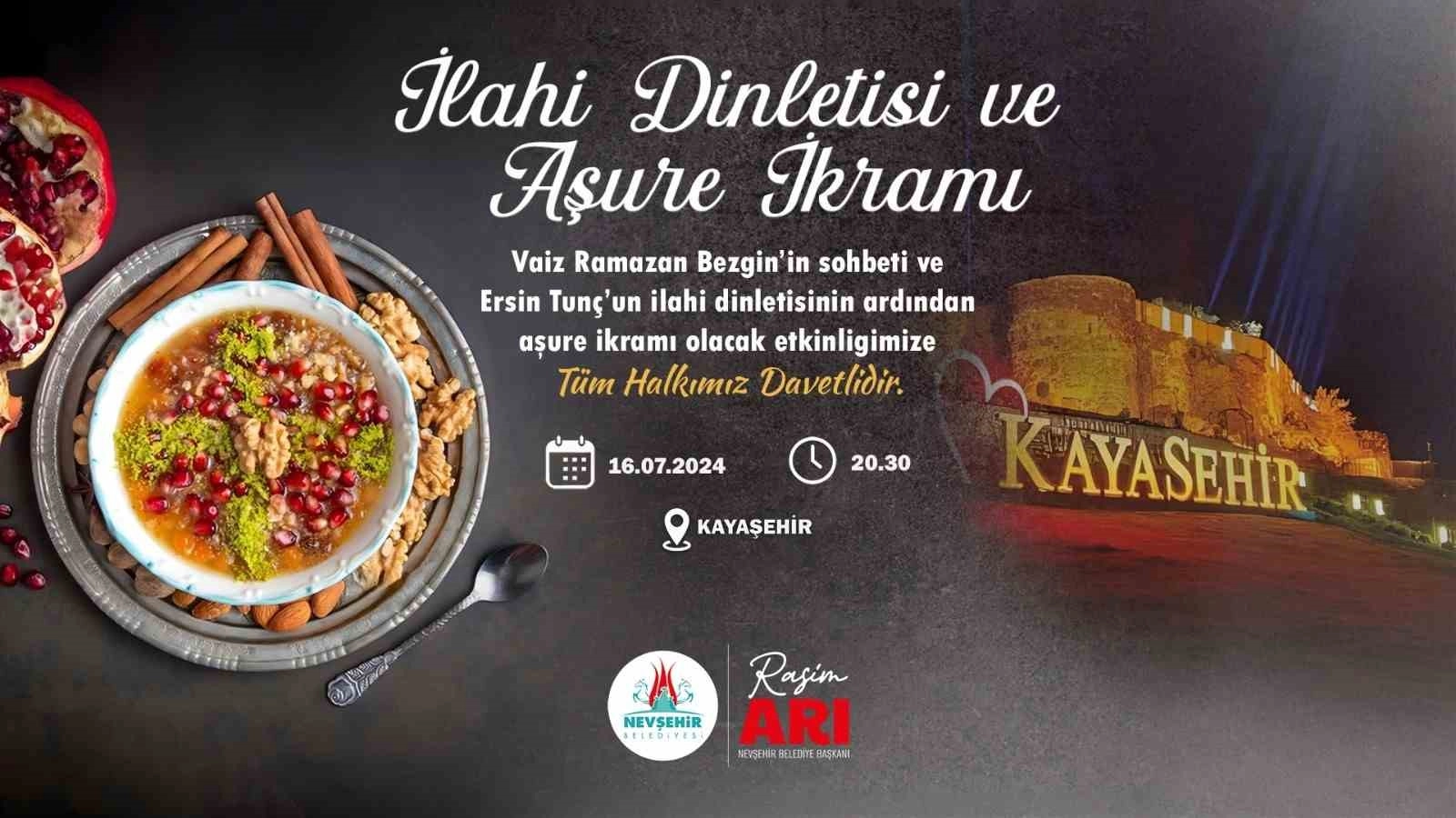 Nevşehir Belediyesi tarafından Muharrem Ayı ve Aşure Günü dolayısıyla düzenlenecek olan program bu akşam Nevşehir Kalesi’nde gerçekleştirilecek. Vatandaşlara aşure ikramının yapılacağı program saat 20.30’da başlayacak.Nevşehir Belediyesi; birlik ve beraberliği artıran, kaynaşmayı sağlayan aşure ikram etme geleneğini bu yıl da sürdürecek. ’Aşure Günü’ dolayısıyla Nevşehir Kalesi içerisinde gerçekleştirilecek olan programda, okunacak olan Kur’an-ı Kerim Tilaveti ve dualarla birlikte özenle hazırlanan aşureler vatandaşlara ikram edilecek. Saat 20.30’da başlayacak olan programda ayrıca Vaiz Ramazan Bezgin tarafından ‘Muharrem Ayı ve Aşure Günü’ konulu kısa bir sohbet gerçekleştirilecek ve ardından Ersin Tunç tarafından ilahi konseri sunulacak.