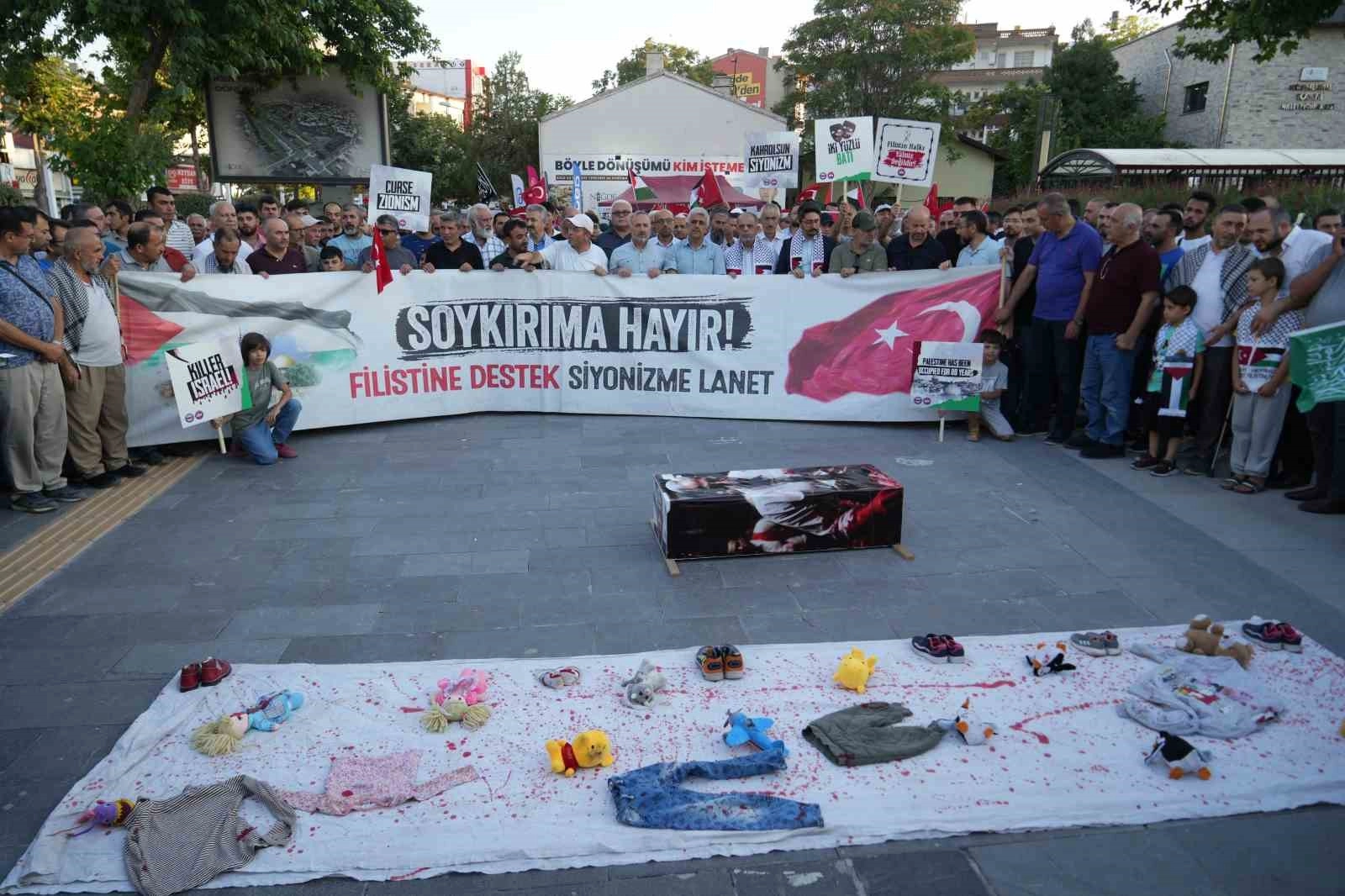 Niğde Sivil Toplum Platformu öncülüğünde ‘Gazze için kıyamdayız’ adı altında yürüyüş düzenlendi.Şehit Ömer Halisdemir Meydanı’nda bir araya gelen sivil toplum kuruluşu ve siyasi parti temsilcileri ile vatandaşlar, Hamas Siyasi Büro Başkanı İsmail Haniye suikastına ve İsrail’in Filistin’e yönelik saldırılarına tepki gösterdi. Sivil Toplum Platformu adına açıklama yapan Müstakil Sanayici ve İşadamları Derneği Niğde Şube Başkanı Hüsamettin Gümüştepe, Filistin’de insanların sığınabilecekleri güvenli nokta olmadığını belirterek, "Yaşanan soykırım bir an önce durdurulmalıdır" dedi.Gümüştepe, “Siyonist İsrail rejimi 7 Ekim’den bu yana Gazze’de insanlık tarihinin en korkunç soykırımını gerçekleştiriyor. 40 bin kardeşimizi alçakça katletti, 100 binden fazla kardeşimiz de yaralı. Gazze Şeridi’nde ayakta kalmış tek bir şehir, tek bir mahalle kalmadı. İnsanların sığınabilecekleri tek bir güvenli nokta bile yok. Gazze’de daracık bir alana hapsedilmiş 3 milyon insan bütün insanlığın sessiz bakışları arasında yaşanan soykırımda çaresizce sıranın kendilerine gelmesini bekliyor. Siyonizmin hizmetindeki Batılı sermaye soykırımı finanse ediyor. Küresel zalimler bir araya gelmiş Gazze’de planlı programlı bir soykırım uyguluyor. Kundaktaki bebekleri, sokaktaki çocukları, camide ibadet edenleri, un kuyruğundaki aç insanları öldürüyorlar. Yine siyonist katiller, ABD’den aldığı güçle barış ve ateşkesin en büyük umudu olan asil bir lider, korkusuz bir mücahit, Gazze davasına ömrünü adamış İsmail Haniye’yi, gözlerimizi dolduran, bileklerimizi sıktıran ve yüreklerimizi kahreden elim suikastla şehit ettiler. Şehidimize Allah’tan rahmet, ümmetimize baş sağlığı diliyoruz. Onlar Haniye’yi öldürdüklerini sanıyorlar, oysa Allah yolunda öldürülenler ’ölüler’ değildir ve onlar Rabbimizin katında rızıklanmaktadırlar. Onlar, bu suikastlarla direnişi durduracaklarını, Filistin’in direncini kıracaklarını, özgürlüğe olan inancı yok edeceklerini sanıyorlar ama yine yanılıyorlar ve yanıldıklarını gün gelecek görecekler. Şehit Haniye’nin dediği gibi ’Suikastların direniş güçlerini, Hamas’ı, Filistin halkını zayıflatacağını düşünenler büyük bir yanılgı içindedir.’ Suikastlar direnişi, Filistin halkını direnişi ve mücadeleyi yükseltmeye teşvik edecek, güçlendirecektir. Bizler buradan bütün uluslararası topluma, dünyanın vicdanı kararmamış liderlerine sesleniyoruz. Soykırımın durdurulması, bu vahşete dur denilmesi için uluslararası dengelere, reel politiğe, ulusal çıkarlara daha ne kadar çok kurban verilmesi gerekiyor. Susmak vahşetin ortağı olmaktır. Gazze’de yaşanan soykırım bir an önce durdurulmalıdır. Derhal ateşkes sağlanmalı, ilaç ve gıda başta olmak üzere insani yardımının acilen önü açılmalıdır. ABD ve diğer ülkelerin soykırıma silah desteği durdurulmalıdır. Soykırımın durdurulması için bütün insanlık ayağa kalkmalı, meydanlar, sokaklar, caddeler ’Özgür Filistin’ sloganlarıyla inletilmeli, liderlere baskı yapılmalıdır” ifadelerini kullandı."Yaşasın nehirden denize özgür Filistin", "Kahrolsun İsrail" ve "Kahrolsun soykırımcı emperyalizm" sloganları atan grup, üzerinde İsrail Başbakanı Binyamin Netanyahu’nun fotoğrafının olduğu tabutu ateşe verdi ve meydana oyuncak bıraktı.