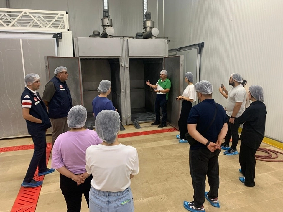Afyonkarahisar’da stajyer öğrencilere et ürünleri parçalama ve sucuk yapımı konusunda uygulamalı eğitim verildi.Afyonkarahisar Tarım ve Orman Müdürlüğü Gıda ve Yem Şube Müdürlüğümüz koordinasyonunda, et ürünleri parçalama ve işleme tesisimizde stajyer öğrencilerimize onaylı üretim süreçleri ve sucuk üretiminin detaylarını inceleme fırsatı sağlandı. Eğitim çalışmasının ardından yapılan açıklamada, “Geleceğimizin teminatı olan öğrencilerimiz, tesisin modern ve hijyenik koşullarında, onaylı üretim süreçlerinin nasıl işlediğini ve sucuk üretiminin tüm aşamalarını yerinde görerek detaylı bilgi edindiler. Bu çerçevede, öğrencilerimize et ürünlerinin parçalanmasından işlenmesine kadar tüm aşamalar ayrıntılı olarak anlatıldı ve uygulamalı örneklerle desteklendi. Bu eğitim çalışması, öğrencilerimizin mesleki bilgi ve becerilerini artırmanın yanı sıra, sektördeki en iyi uygulamaları öğrenmelerini sağlamıştır. Aynı zamanda, onaylı üretim süreçlerinin önemine vurgu yapılarak, kaliteli ve güvenilir gıda üretiminin ülkemiz için ne denli önemli olduğu bir kez daha vurgulanmıştır” ifadelerine yer verildi.