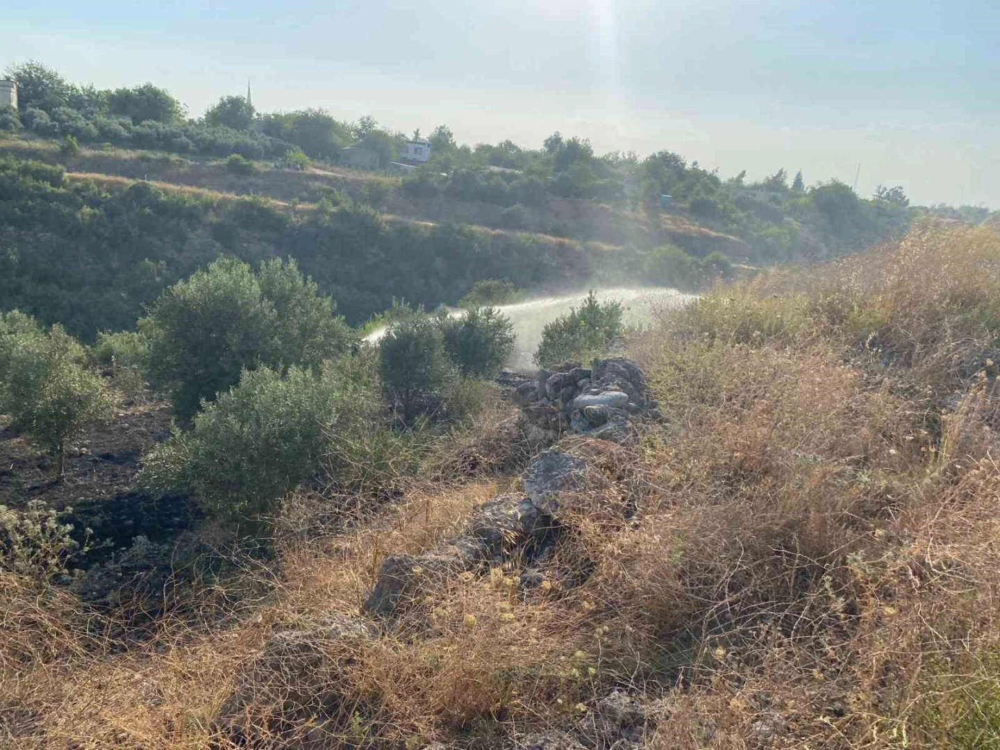 Osmaniye’nin Düziçi ilçesinde çıkan anız yangını zeytin ağaçlarına sıçradı. Yangında yaklaşık 10 dönümlük zeytin bahçesi zarar gördü.Düziçi ilçesi Karacaoğlan Mahallesi’nde çıkan anız yangını kısa sürede yakındaki zeytin bahçesine sıçradı. Vatandaşların ihbarı üzerine olay yerine söndürme Orman Bölge Müdürlüğü ve Düziçi Belediyesi itfaiye ekiplerinin müdahalesiyle yangın kontrol altına alındı.Yangında İbrahim Şimşek’e ait yaklaşık 10 dönüm zeytin bahçesi zarar gördü.