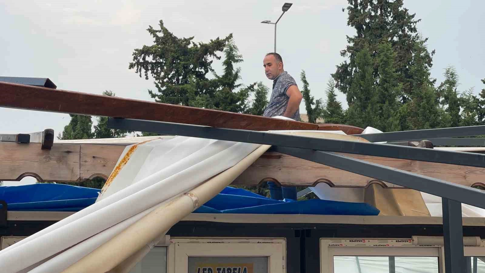 Osmaniye’de kısa süreli etkili olan fırtına ve yağışlı hava çatıları uçurdu, ağaçları kökünden söktü.Osmaniye’de öğleden sonra etkili olan fırtına, beraberinde yağmuru da getirdi. Yağışla birlikte yollar göle dönerken, fırtına iş yerlerinin çatısını uçurdu, ağaçları kökünden söktü. Adnan Menderes Mahallesi’nde depremzede esnaf için yapılan Cebelibereket konteyner çarşıda bulunan dükkanlar fırtınada zarar gördü. Osmaniye Valisi Erdinç Yılmaz, konteyner çarşıyı ziyaret ederek, çalışmalar hakkında bilgi aldı. Ziyaretinin ardından açıklama yapan Vali Yılmaz, "Osmaniye’mizde maalesef çok güçlü bir fırtına ve yağmur çatıların uçmasına, ağaçların devrilmesine, konteyner çarşımızın birçok çatısının uçmasına vesile oldu. Ama biz buradayız, vatandaşlarımızın yandayız. Hamdolsun şu ana kadar herhangi bir can kaybı, bir olumsuzluğumuz yok. Bizim için bu önemli. Bunların hepsini Allah’ın izniyle en kısa sürede yerine getiririz" diye konuştu.Adnan Menderes Mahallesi’nde oturan Turgut Çulcu’ya ait evin çatısı uçtu, duvarları zarar gördü. Yağmur ve bir anda çıkan fırtına sırasında evde oturduğunu söyleyen Çulcu, “Aniden çıkan rüzgar, fırtına, yağmur üçünün bir karışımı bizleri de olumsuz etkiledi. İçeride mahsur kaldık, yağmur boyunca dışarı çıkamadık. Yağmurun bitmesiyle kendimizi dışarı zor attık" dedi.